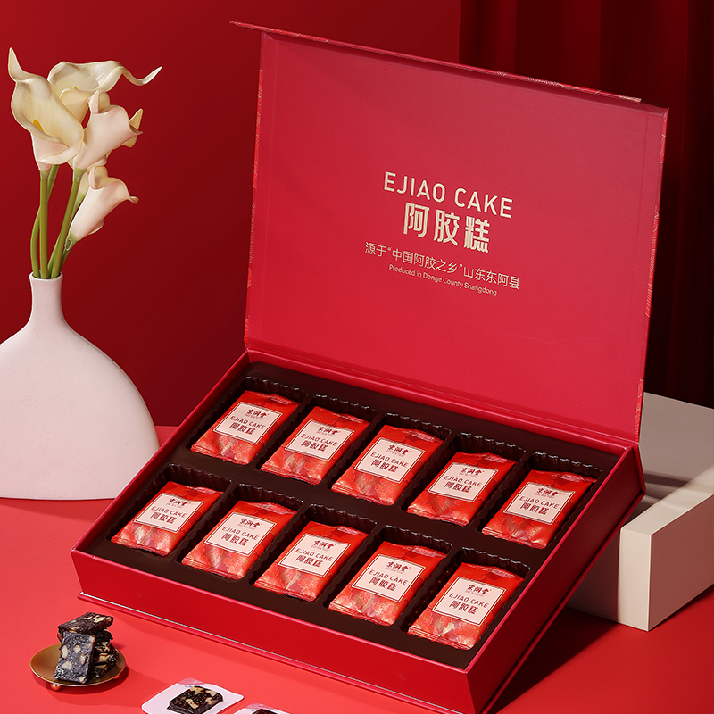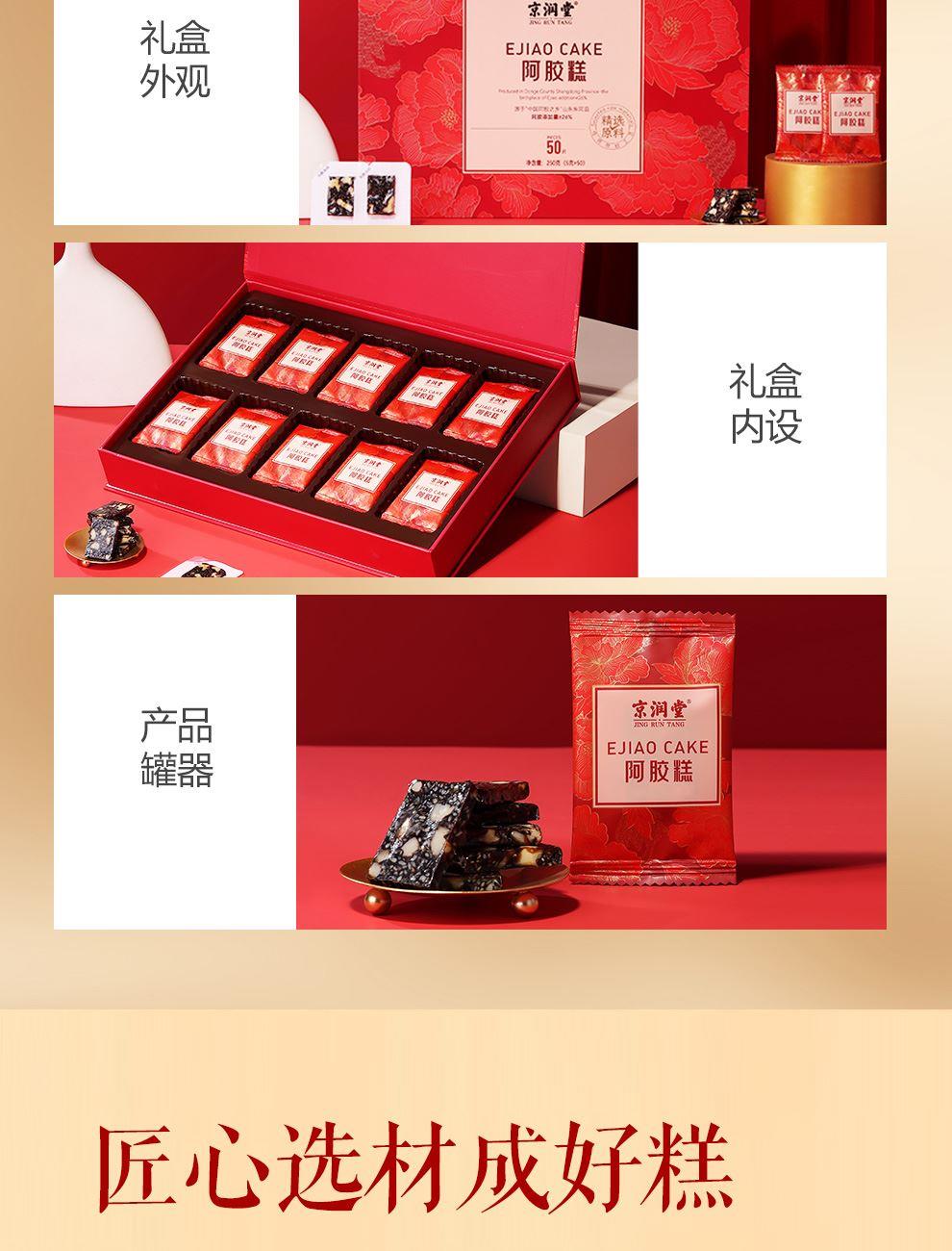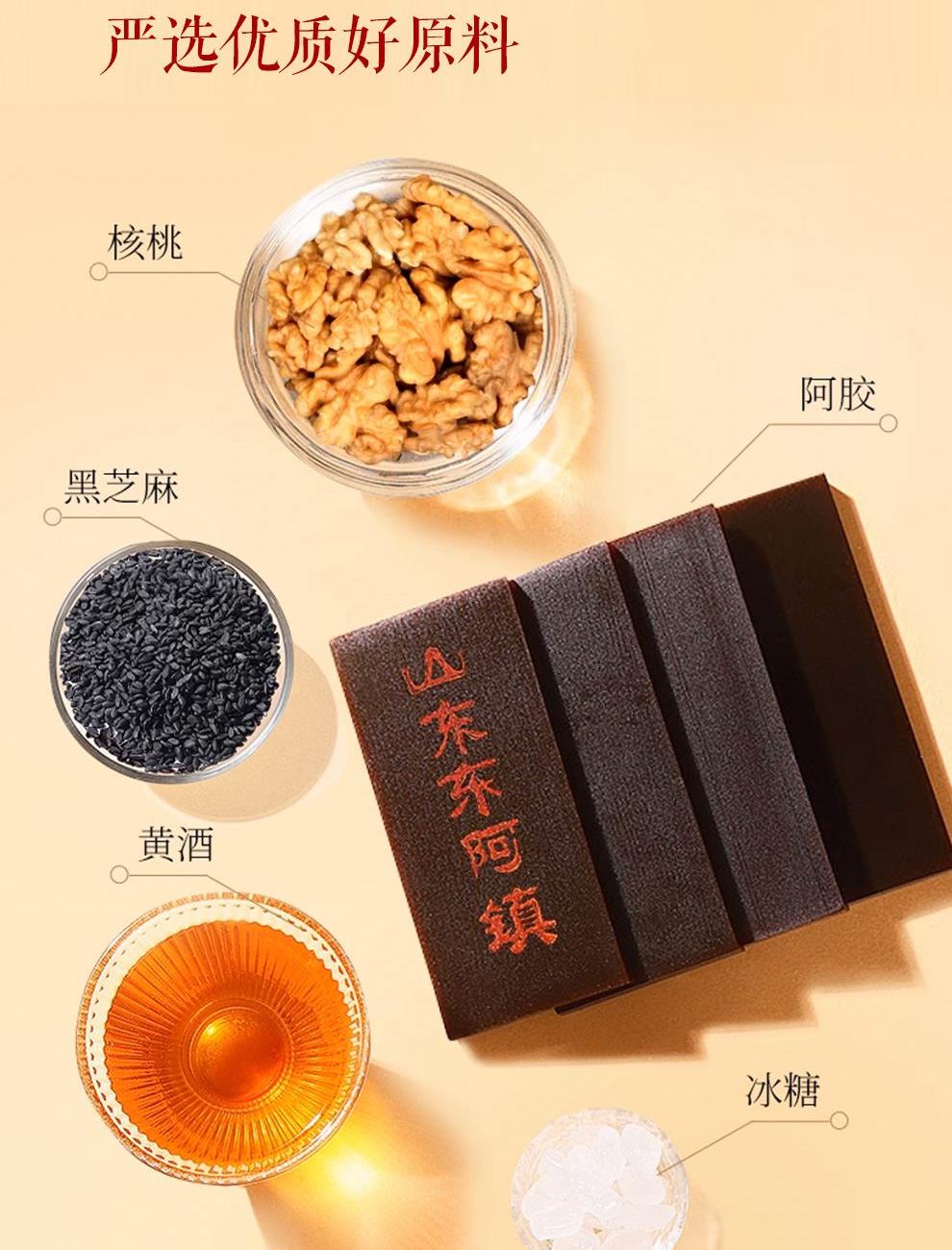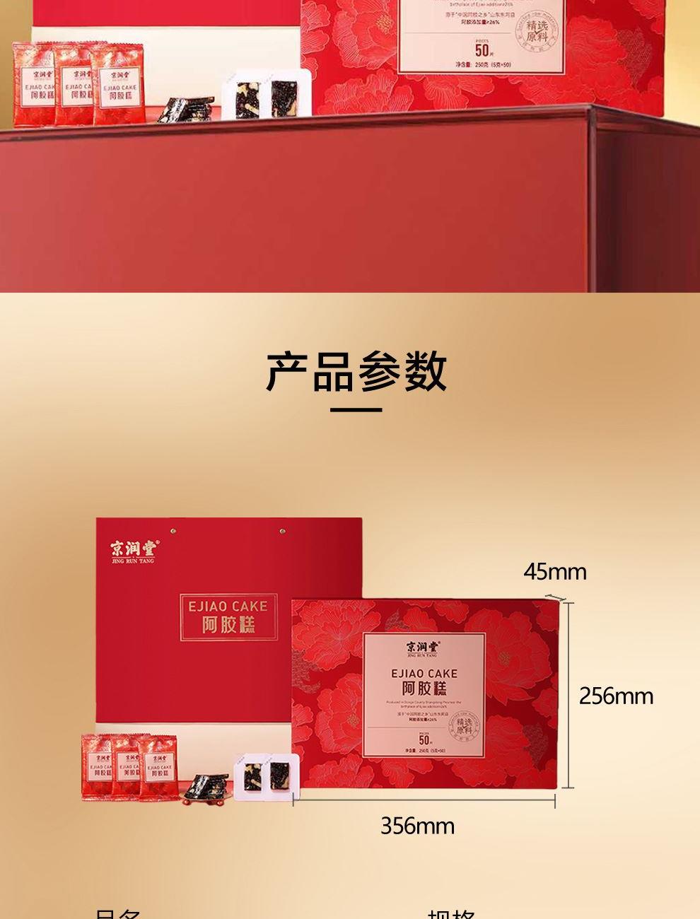规格:250克(5克*50片)、阿胶添加量≥26% 卖点: 阿胶糕的核心在于阿胶,而优质的阿胶源自道地原料与传统工艺。我们严选山东东阿的上等驴皮,这里的驴皮质地厚实、营养丰富,为阿胶的高品质奠定了坚实基础。东阿独特的地理环境与水质,使得熬制出的阿胶纯度高、杂质少、药效佳,富含多种对人体有益的氨基酸和微量元素,如赖氨酸、精氨酸、组氨酸以及铁、锌、钙等。这些营养成分在补血、滋阴、润燥等方面功效显著,是其他产地阿胶难以比拟的。