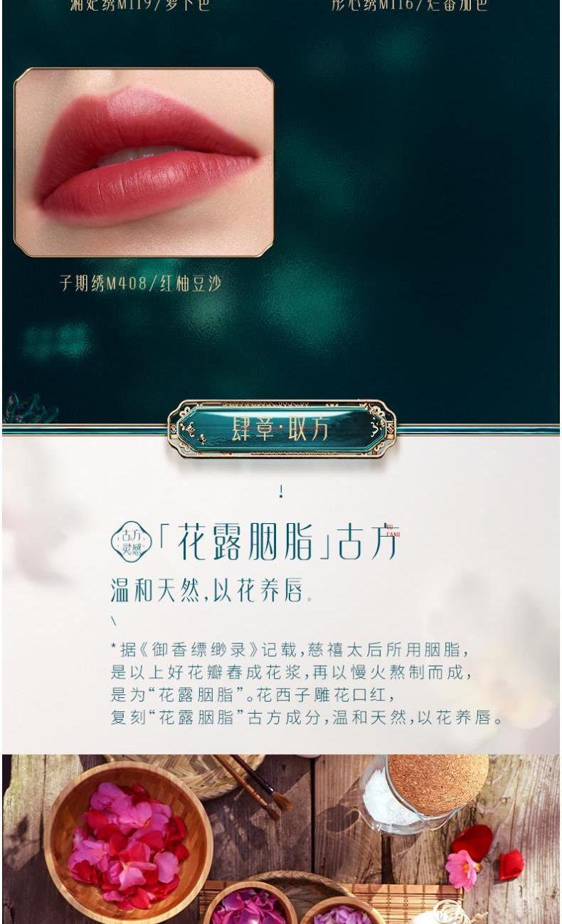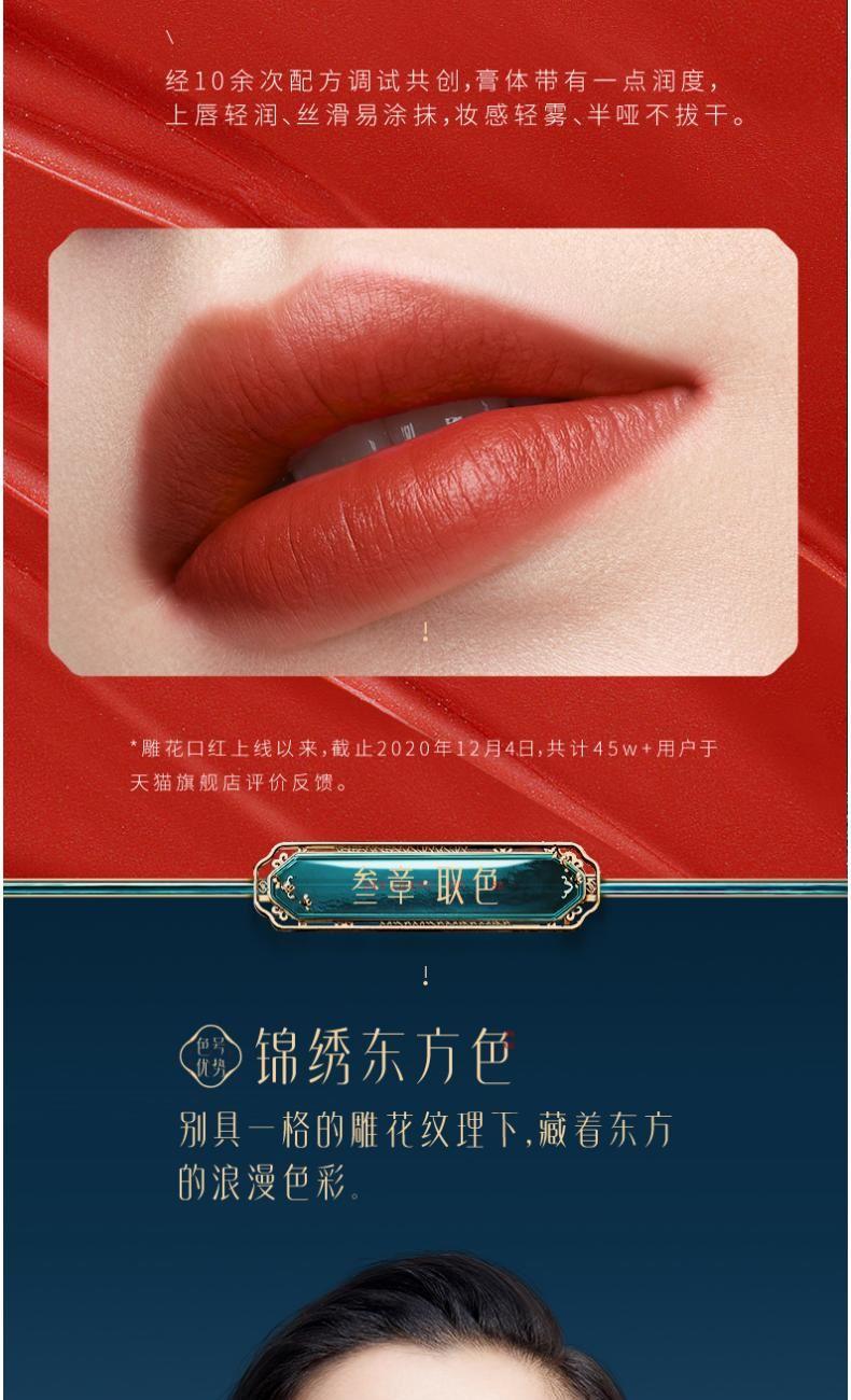 规格:3.2g 卖点: 1.质地软糯,唇感如羽轻盈; 2.好涂不易卡纹,上唇哑而不干; 3.打造经典唇妆,一抹优雅心动。