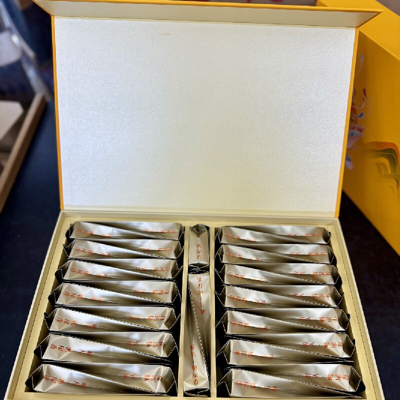 【茶名】:鸭屎香(雪片) 【重量】:250g(30泡) 【配件】:小泡茶+礼盒+手提袋 【口味】:清香型 【产地】:广东·凤凰山 雪片鸭屎香是一种优质的乌龙茶,以下是它的主要特点: 香气特点:雪片鸭屎香的特点是香味高扬,香气浓郁、饱满、鲜爽。它具有浓郁的杏仁香味,以及兰花的香味,口感清甜爽口。 口感特点:雪片鸭屎香冲泡后的茶汤颜色金黄明亮,口感甜润,顺滑。茶汤入口后,能感受到甜而不腻的口感,给人一种生津、回甘的感觉。 耐冲泡:雪片鸭屎香十分耐泡,一盏茶可以连续冲泡15-20次左右,香味、汤色依旧如初,不会有太大的改。 采摘与制作:雪片鸭屎香是单丛茶一年中产量少的一季,也是香气为“高扬”、“持久”的一季茶叶。它是霜降后,直至小雪节气前后左右采收,制作而成的