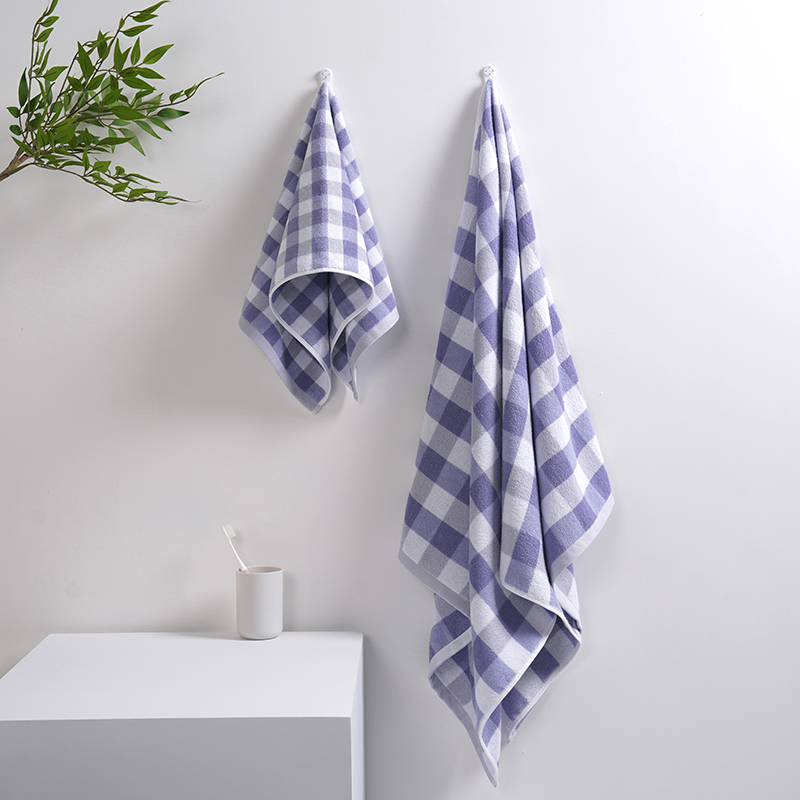 规 格:毛巾35×75(±1)cm×2 浴巾70×140(±1)cm 克 重:毛巾85g/浴巾350g+ 材 质:A类纯棉(装饰部分除外) 颜 色:蓝格 包装尺寸:42×31×7cm