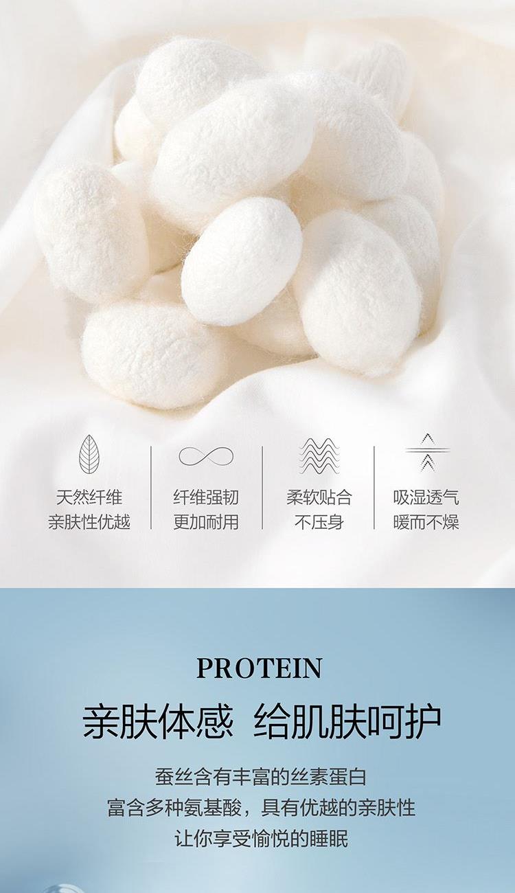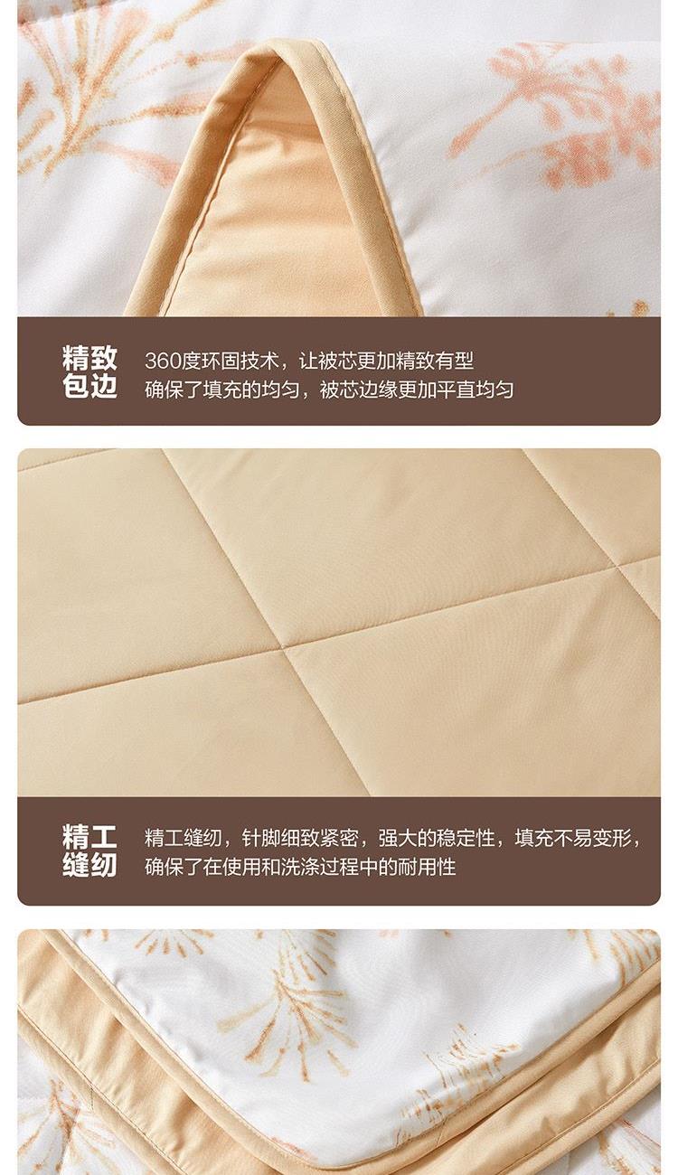 面料:聚酯纤维 规格:200cm*230cm 填充材质:50%柞蚕丝(中长丝绵)+50%聚酯纤维 填充重量:350g