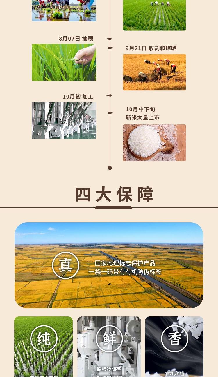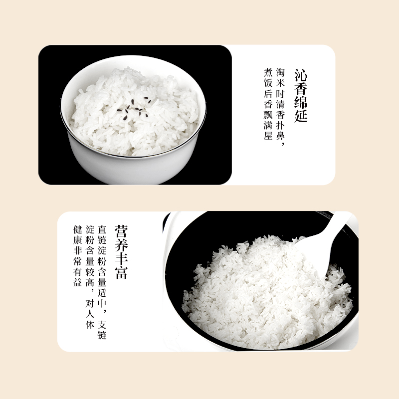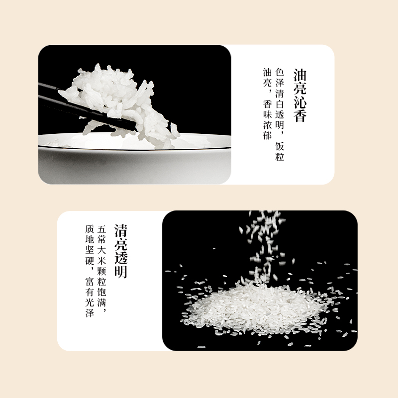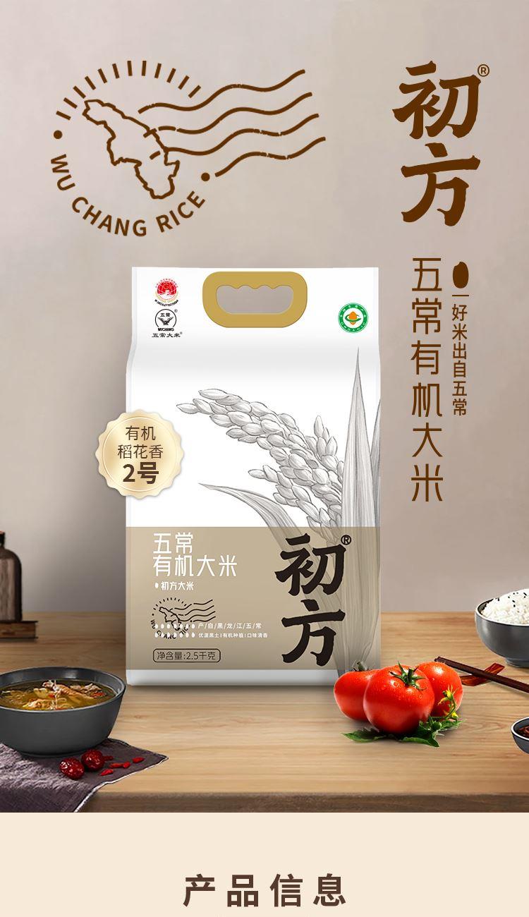 ①产地:五常 ②包装规格:2.5kg六面 ③保质期:12个月 ④贮存条件:常温保存 ⑤产品指标:蛋白质6.2g/100g; ⑥产品卖点: 通过有机认证和五常原产地认证; 产自五常核心产区的有机黑土地,土地肥沃,自然活水灌溉,水源充足; 色泽清白透明,颗粒饱满,饭粒油亮,香味浓郁