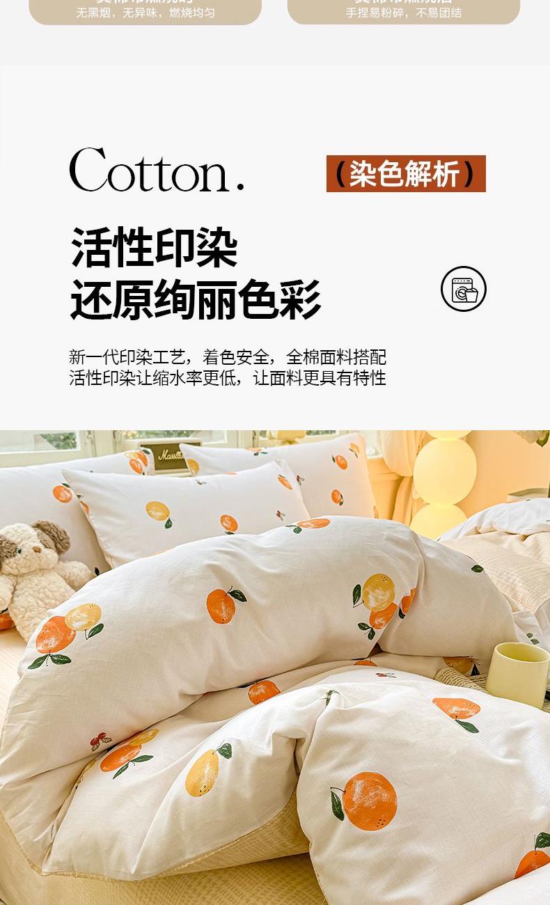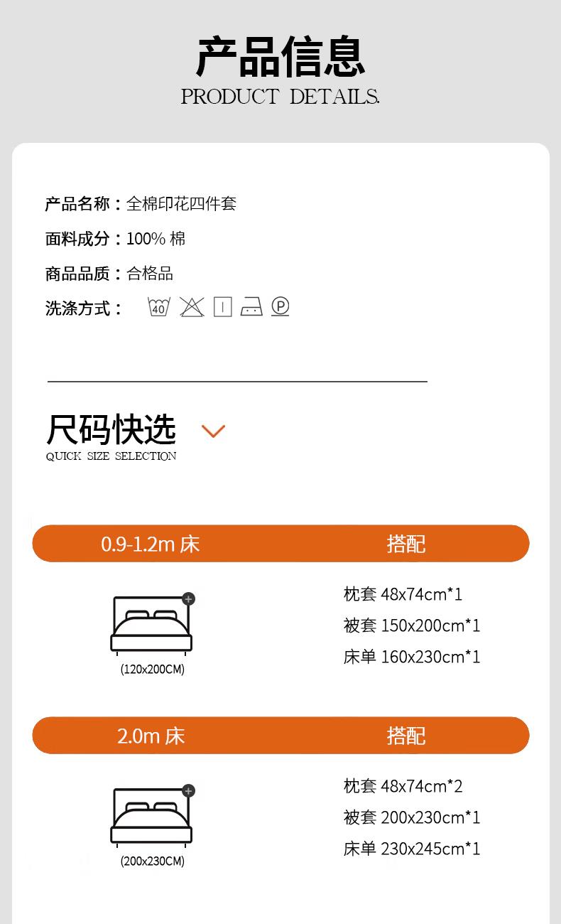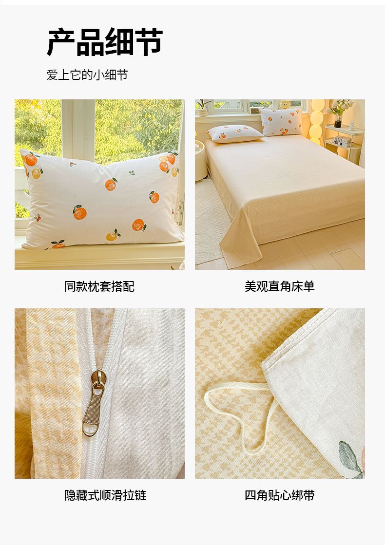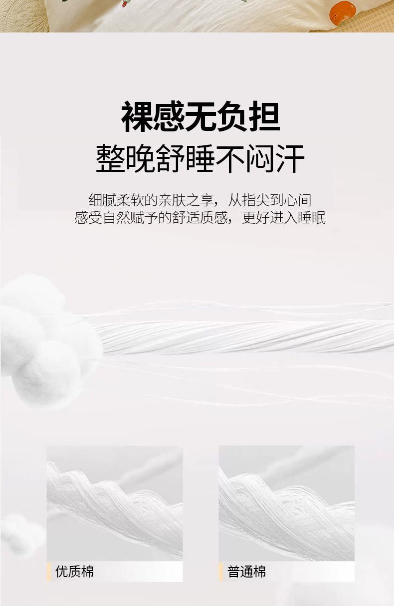1:高支高密面料透气性高 柔软舒适 日照充足,纤维柔韧,肉眼可见的高品质面料无纱结,质感比一般的新疆纯棉舒适面料 2:每一次接触都能感受到自然的呼吸仿佛被云朵包裹住身体,帖服保暖,远离闷热感 3:AB 面均采用不同设计,时尚不失格调适合多种家居风格,随心所欲 尺寸:被套200*230cm*1 床单:230*245cm*1 被套:48*74cm*2 包装:礼盒