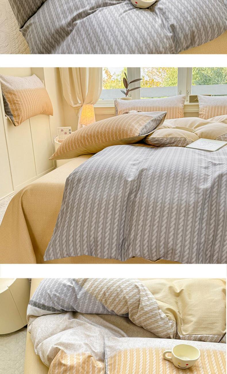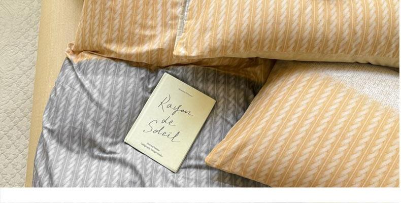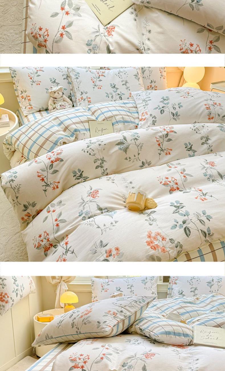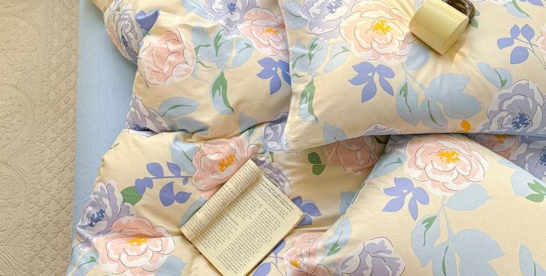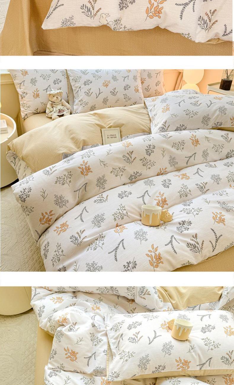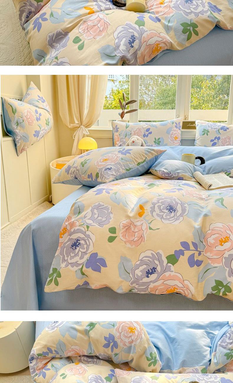 1:高支高密面料透气性高 柔软舒适 日照充足,纤维柔韧,肉眼可见的高品质面料无纱结,质感比一般的新疆纯棉舒适面料 2:每一次接触都能感受到自然的呼吸仿佛被云朵包裹住身体,帖服保暖,远离闷热感 3:AB 面均采用不同设计,时尚不失格调适合多种家居风格,随心所欲 尺寸:被套200*230cm*1 床单:230*245cm*1 被套:48*74cm*2 包装:礼盒