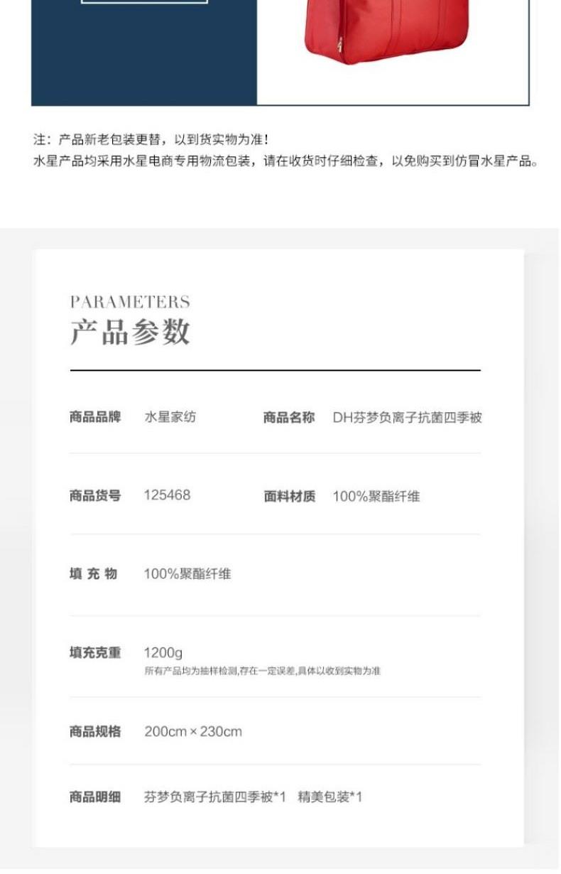 水星家纺芬梦负离子四季被200*230cm