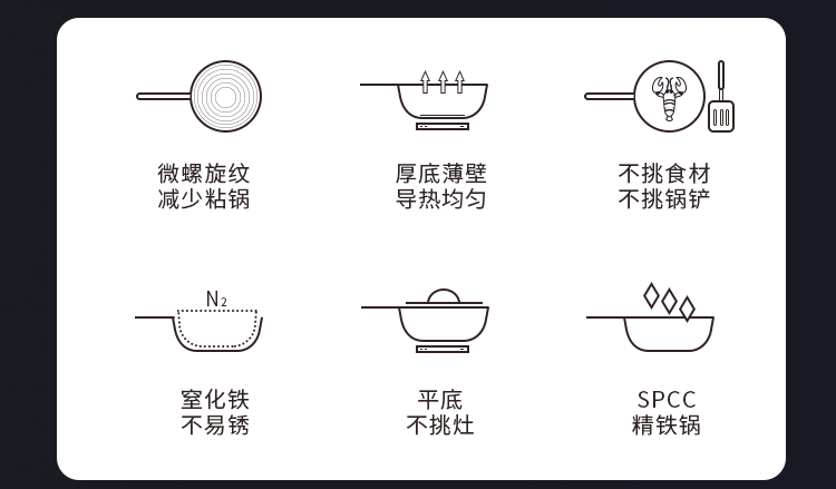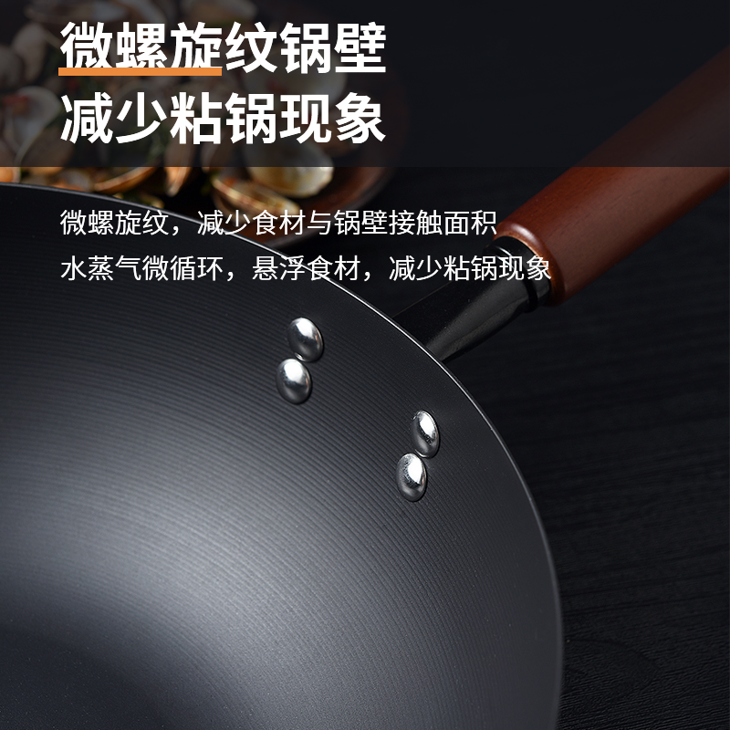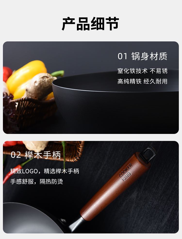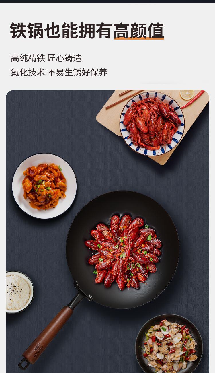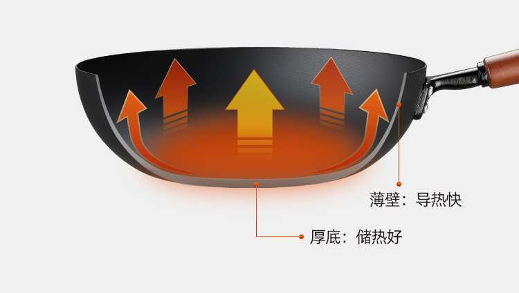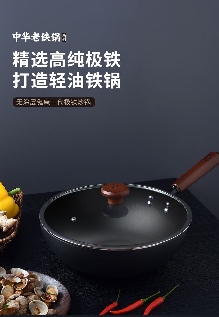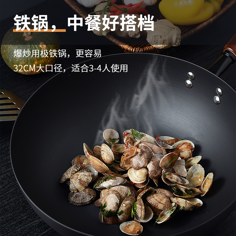 规格:口径32cm、材质:极铁 1,高纯精铁匠心铸造 氮化技术不易生锈好保养 2.锅底加厚储热性更好,锅壁薄传热快,快速升温,更适合爆炒。 3.氮化防锈处理,锅体耐磨,不易生锈洗锅也不用再小心翼翼 4.铁锅使用后,及时清洗干净,并用小火把锅身烘干,不要有水,这样可有效避免锅体生锈,延长铁锅使用寿命.