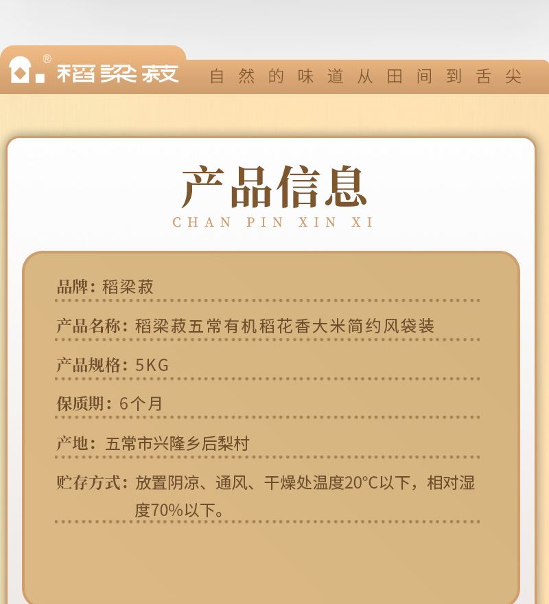 包装:真空袋装 执行标准:GB/T 19266 保质期:6个月 质量等级:优质一级 产地:黑龙江五常市 产品尺寸:300mm*240mm*80mm 推荐理由: 1、五常有机稻花香2号米。 2、PICC人保承保产品。 3、稻田24小时实时监控。 4、智慧农业系统。 5、当月现磨新米发货。 6、独立溯源码。 7、双层真空保鲜。