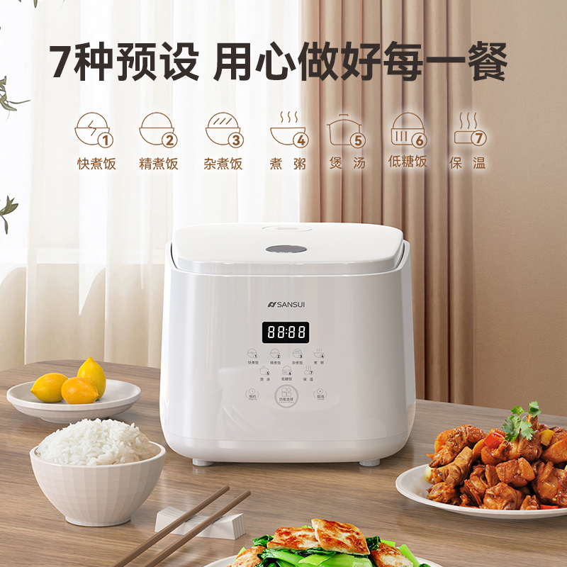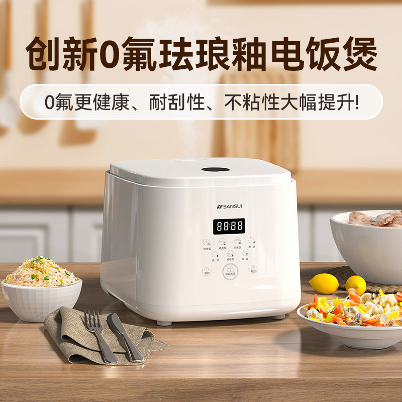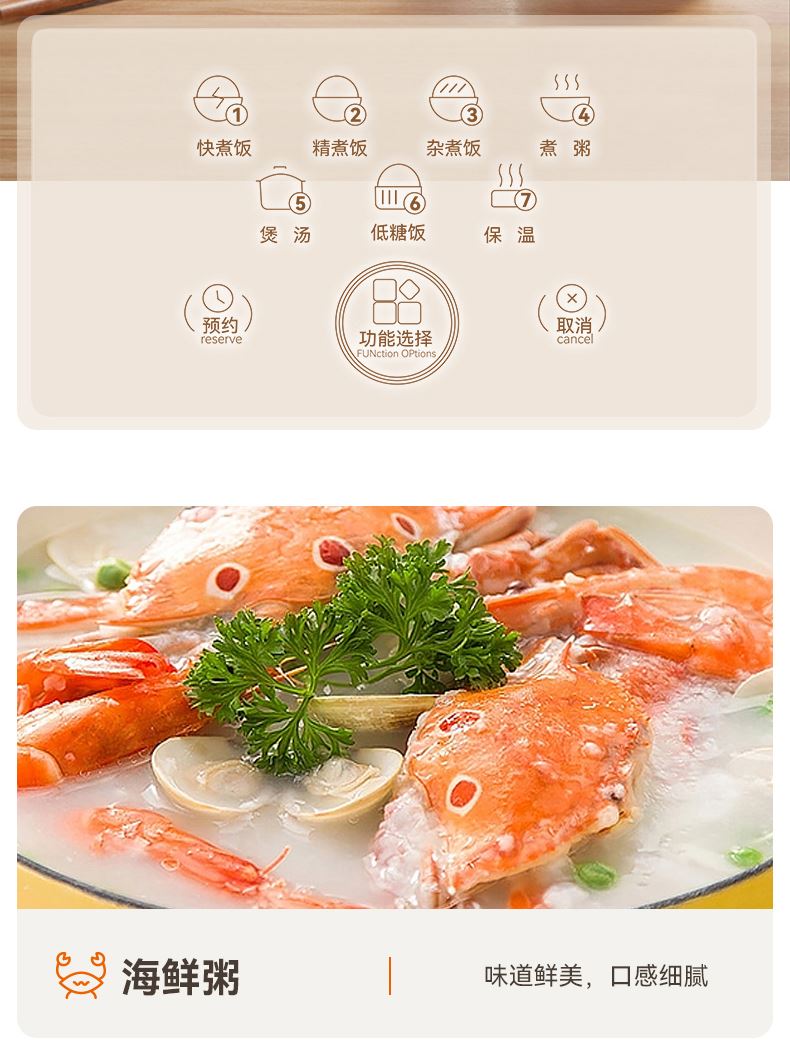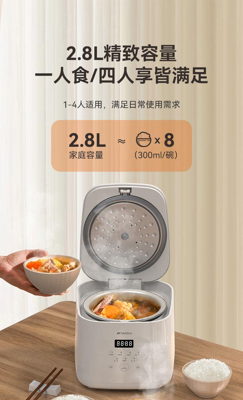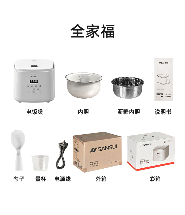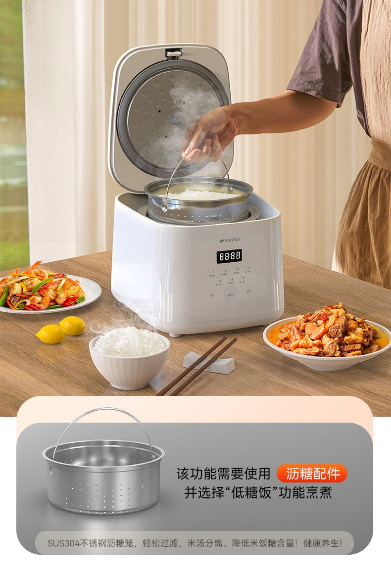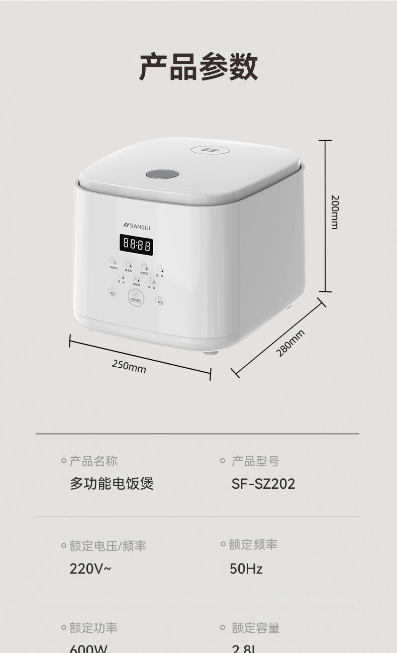额定功率:600W 额定容量:2.8L 铸铁球釜内胆 0氟珐琅不粘涂层 24小时智能预约、 糖饭功能(配304不锈钢沥水篮) 八大智能菜单 包装方式:彩包+邮购箱