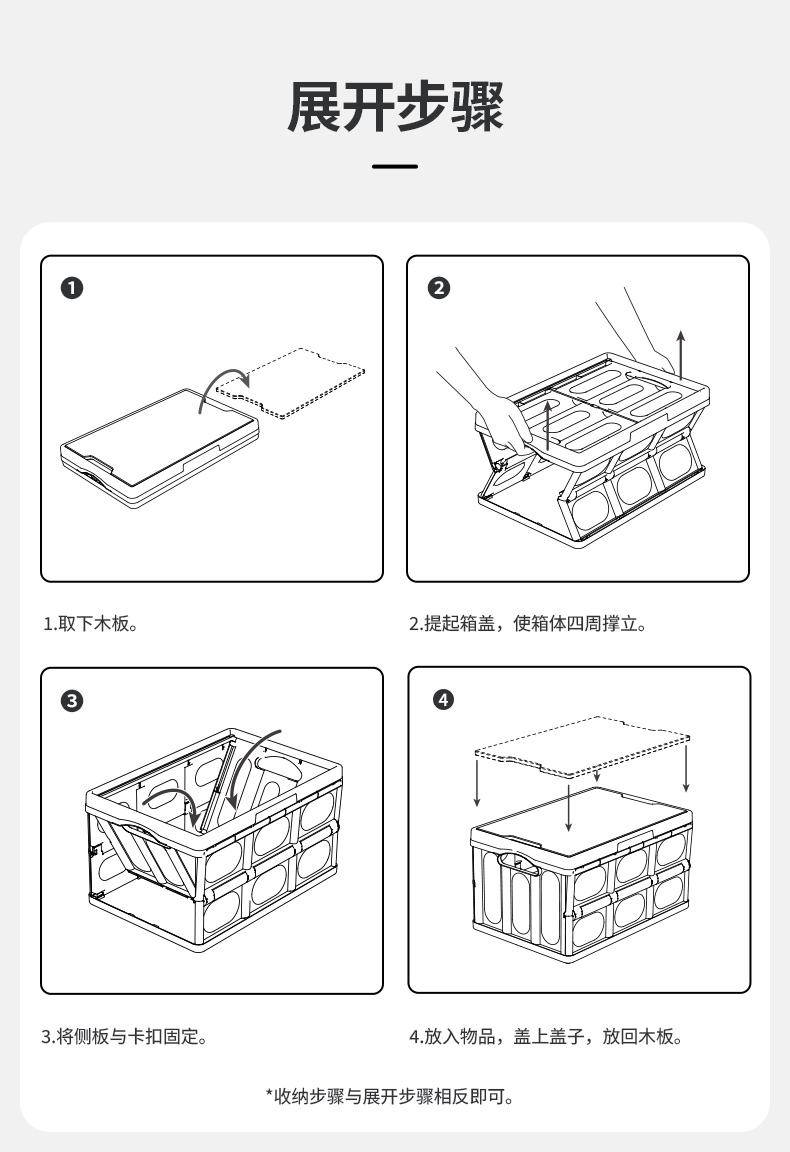 单箱体积(m³):0.0597 尺寸(CM):59*43*23.5 69码:6941870586208 产品参数:展开后:42*28.5*23.5CM 折叠后:42*28.5*5.5CM 材质:PP、密度板 单个PE袋