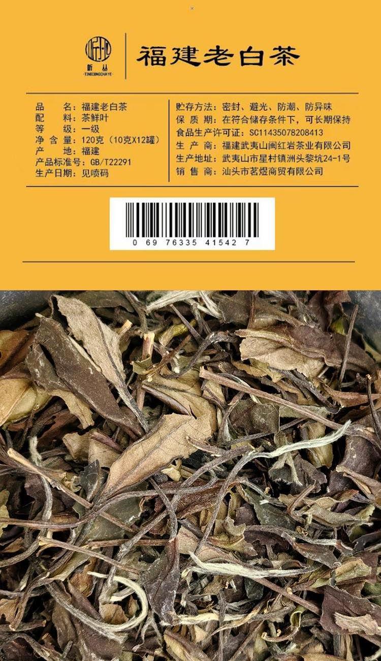【茶名】:老白茶(6年陈茶) 【型号】:MY0316 【重量】:120g 【配件】:小罐茶+礼盒+手提袋 【口味】:花香型 【产地】:福建 香气特征:白牡丹茶的香气以毫香为主,且毫香纯爽,有明显的鲜爽感。品质上乘的白牡丹还会带有花香,且花香清浅悠长。滋味特征: 白牡丹茶滋味清甜醇爽、毫香足,轻啜一口有明显的鲜爽感。品质好的白牡丹所带的回甘明显、清甜,并伴有毫香、花香、青草香,滋味变化明显。冲泡后,白牡丹的茶汤多为透明的琥珀色、浅黄色。 功效特征: 白牡丹茶中氨基酸和多种维生素的含量较丰富,使得春茶的滋味更为鲜爽,香气更加强烈,作用更为明显。具有提神、明目、护肝、降血压、降血脂、疏通血管等功效。
