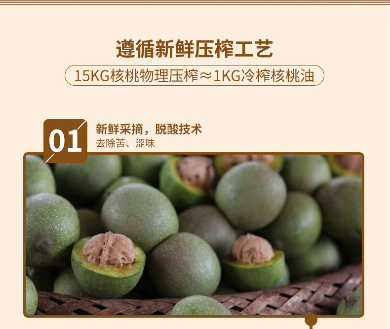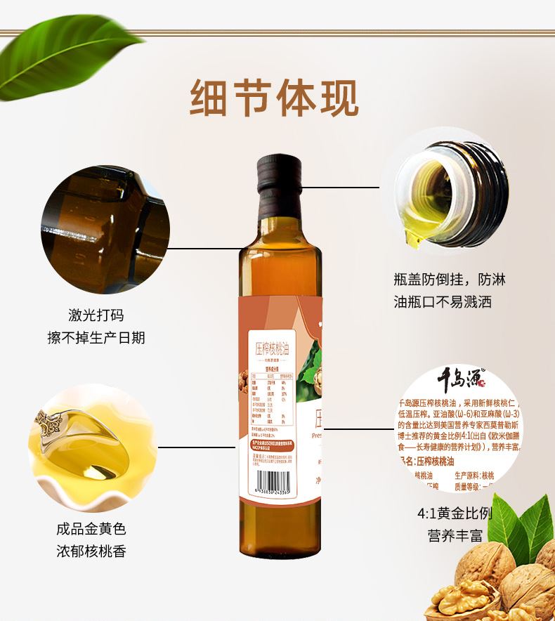 等级:一级 榨取工艺:冷榨 包装形式:礼盒装 加工工艺:压榨 保质期:540天 包装规格:2瓶 一级压榨核桃油,物理低温压榨,婴幼儿童营养食用油,压榨核桃油500mL*2礼盒装