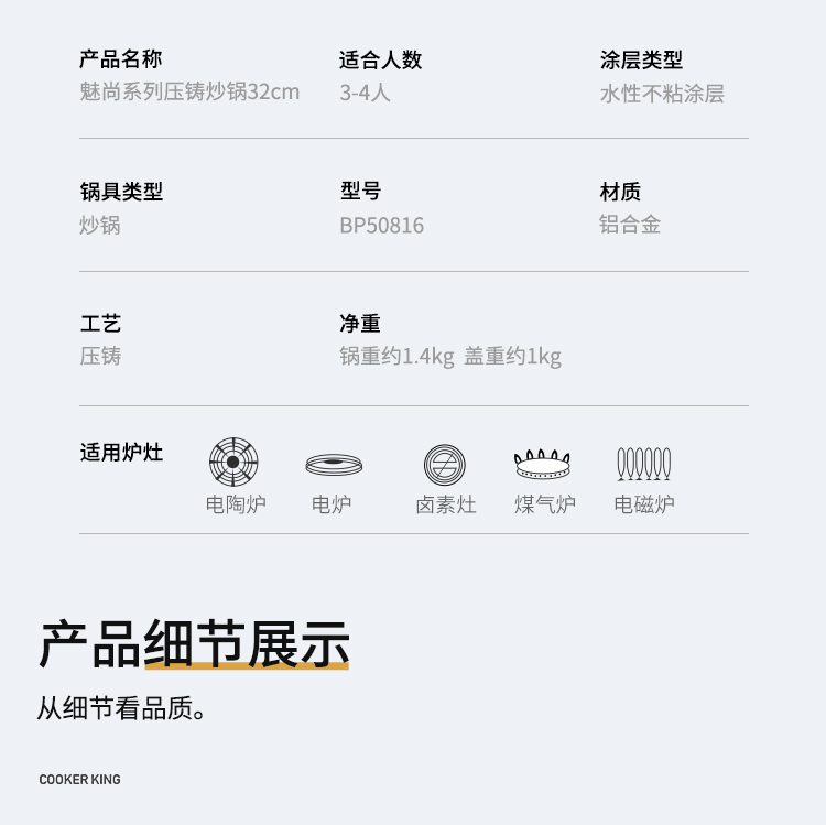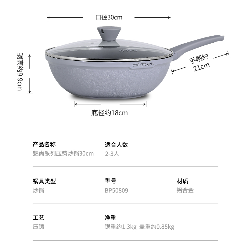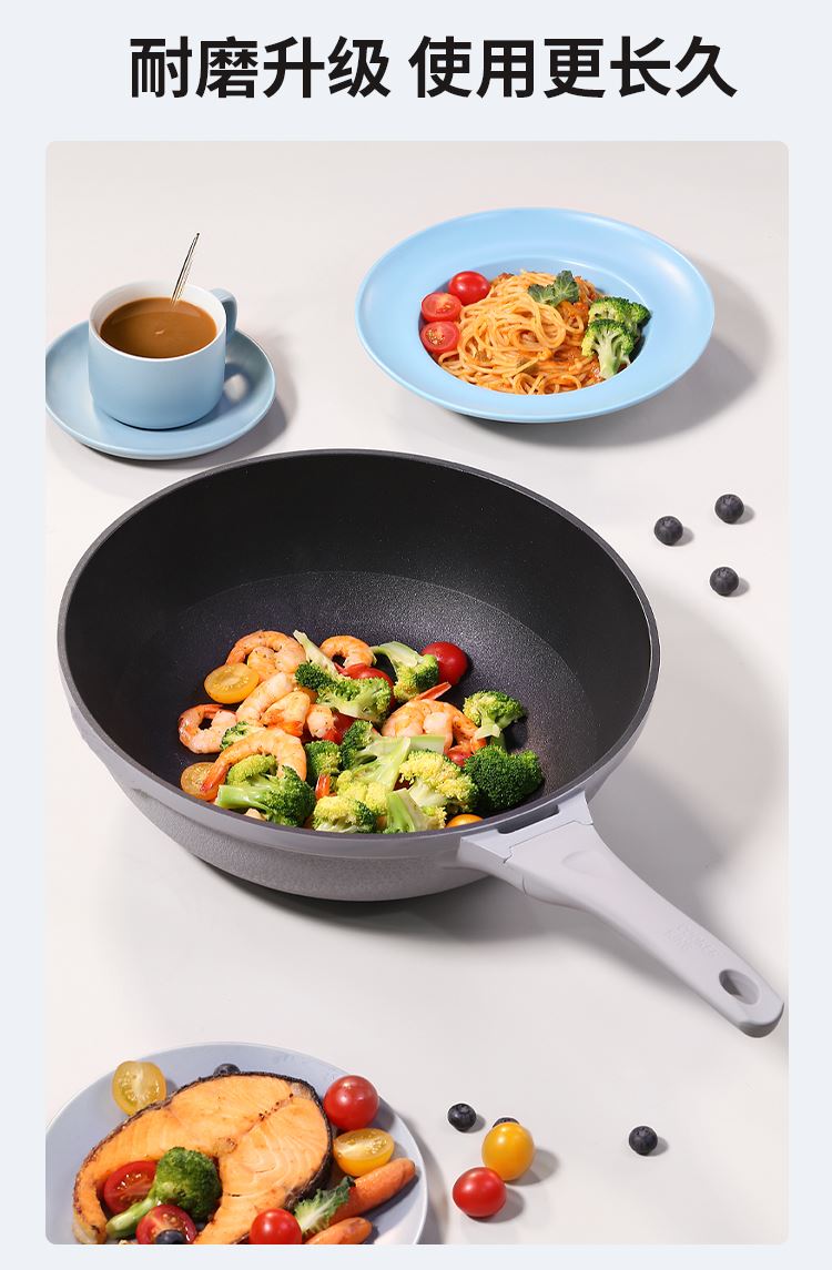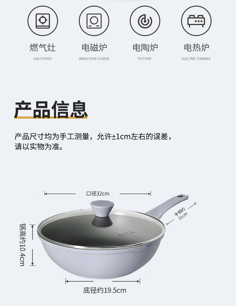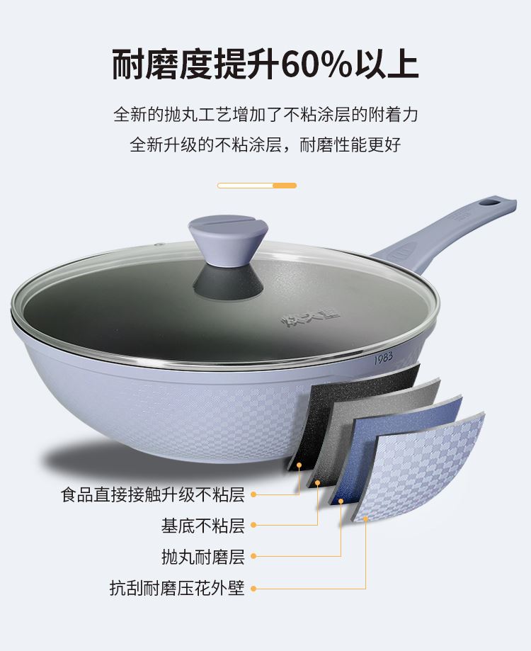 规格:口径32cm、材质:铝合金 重量:锅1.4kg,锅盖1kg 1、耐磨度提升60%以上,全新的抛丸工艺增加了不粘涂层的附着力全新升级的不粘涂层,耐磨性能更好 2、岂止于轻,不粘实力升级 3、轻烟少油 健康烹饪,健康不粘涂层,不含PFOA烹饪油烟少,餐后好清洗