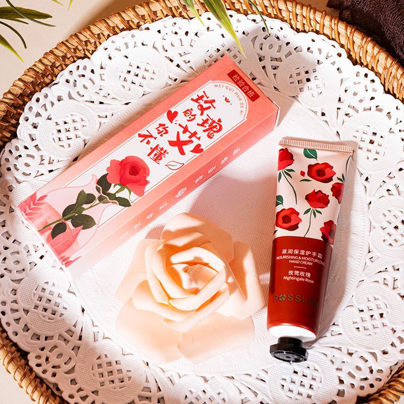 产品主题:玫瑰的艾你不懂 礼盒规格:132*40*25mm 产品配置:夜莺玫瑰护手霜30g*1 推荐理由: 1、手是人的第二张脸,一双白皙嫩滑的双手,总能不经意间拨动爱人的心弦。 2、手护健康,爱自己,从一支喜欢的护手霜开始。 3、法国调香师调香,淡雅玫瑰香氛,滋润不黏腻,柔嫩肌肤。 4、每支30g,更便携,随地补涂,呵护双手。