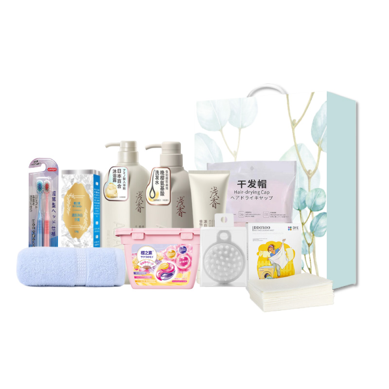 配置:(香型随机/新老包装随机) 1.浅香氨基酸洗发水500g*1 2.浅香氨基酸沐浴露500g*1 3.浅香氨基酸顺滑膏260g*1 4.日本樱之素牙刷两支装*1 5.日本樱之素清新净白牙膏120g*1 6.洁丽雅臻品长绒棉毛巾(颜色随机)70g*1 7.施卡西珊瑚绒吸水速干加厚干发帽*1 8.美国进口DDOXOO防串色片40片*1 9.日本樱之素洗衣凝珠清新自然花香10g*18粒装*1 10.日式清洁按摩气垫梳*1 11.繁花系列精美彩盒*1