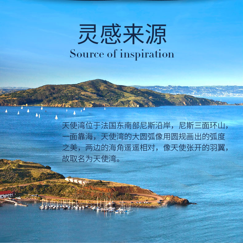 邂逅天使湾设计灵感来自法国地中海沿岸绚烂的海湾——天使湾,轻扬的弧形瓶身犹如天使的羽翼遥相呼应,温暖地拥抱着一片蔚蓝和金色的海岸,温柔中透露着性感。琥珀男士香水以浓郁复杂的琥珀香调为基础,搭配干净清新的百里香、茉莉、丁香,呈现出大胆清新、抽象神秘的阳刚性感味道。浓郁的琥珀香与清新的花果香形成对比,让此款香水充满惊奇和诱惑,为懂得欣赏复杂香味,有魅力的男士量身定制。 设计:法国设计师曾获红点设计大奖设计师设计 香料:法国格拉斯PE集团直供优质香料 工艺:珠宝级锻造工艺 标配:锌合香水座+60ML香水+50ML补充液 +纳米防滑垫+精美礼盒袋子 5种香型: 琥珀男士A、 古龙C、 海洋O、 真我D、 自由之翼F