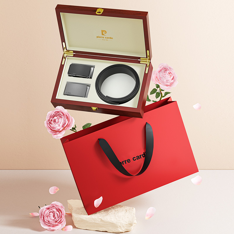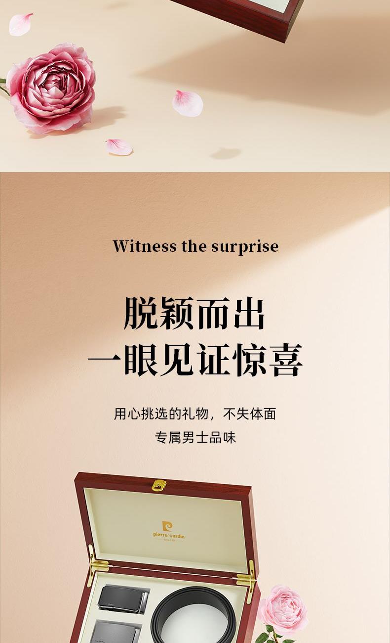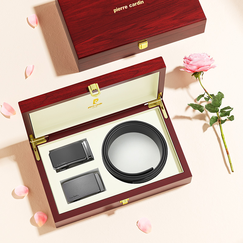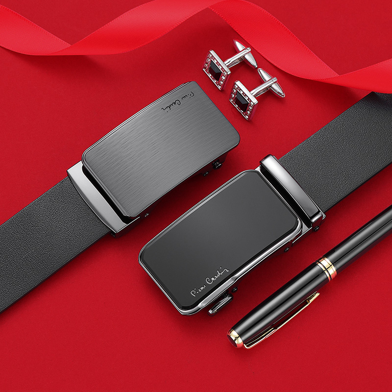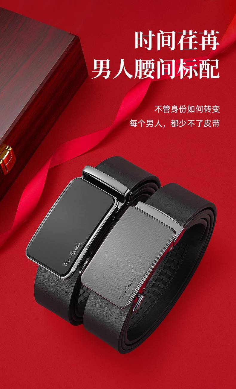 皮尔卡丹黑色双扣头皮带礼盒二件套
