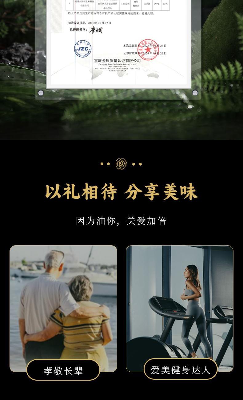 1、纯正有机,物理压榨,世界硒都,恩施原产; 2、脂肪酸黄金配比1:8:1,符合欧米伽膳食食用油标准; 3、不饱和脂肪酸含量为88.9%,居所列食用油首位; 4、高烟点,少油烟。