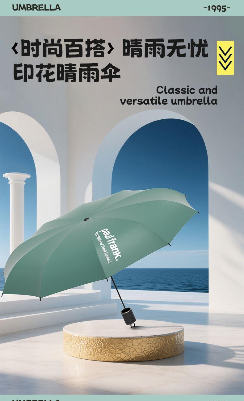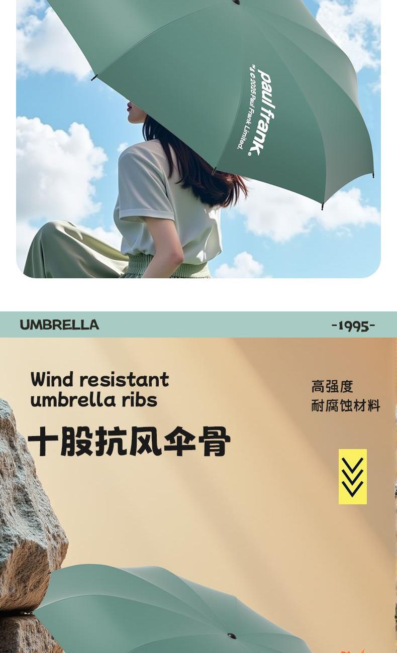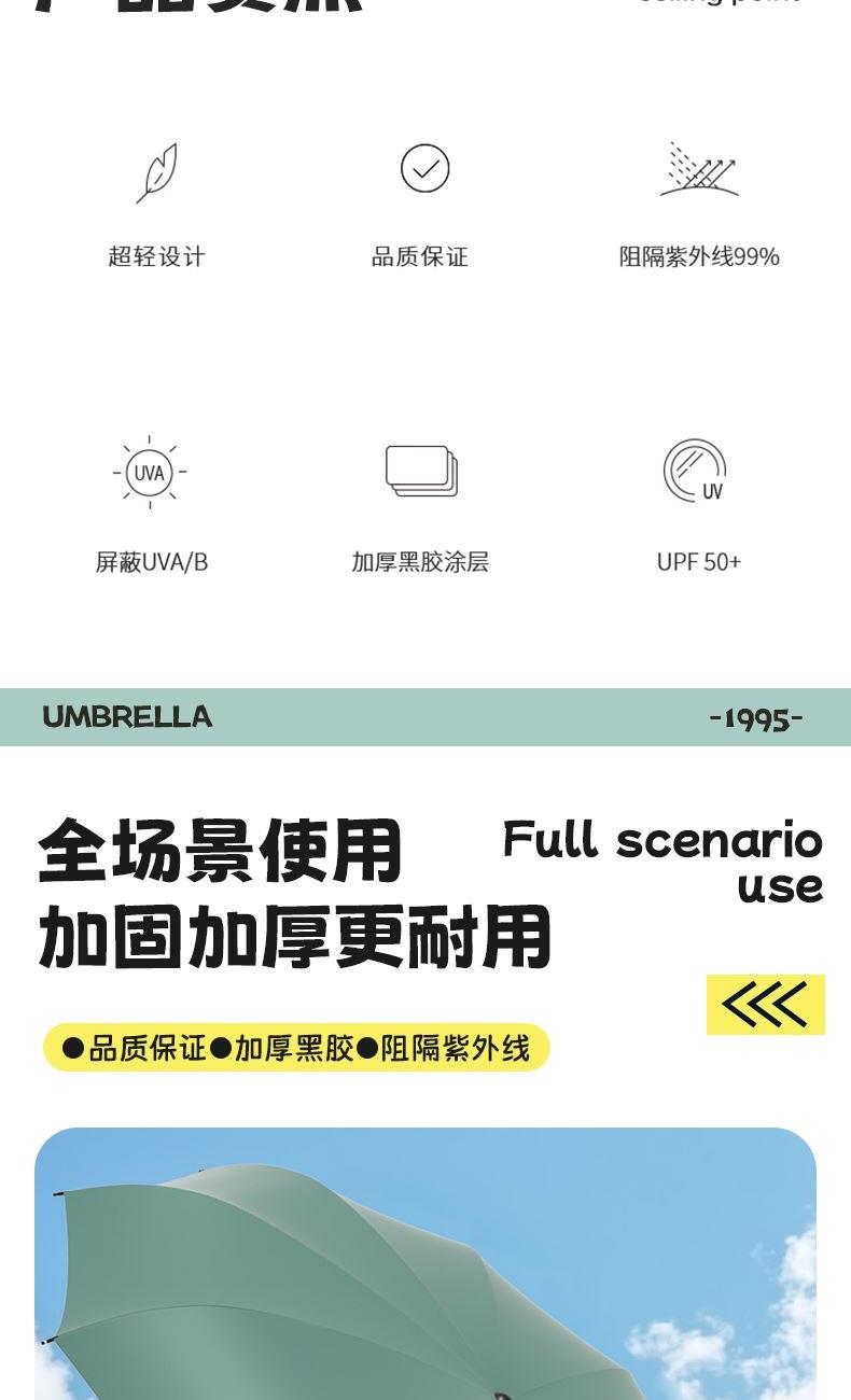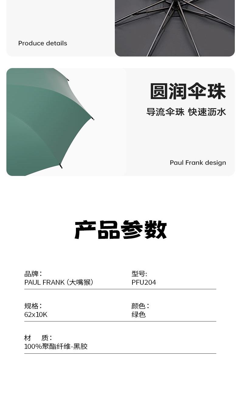产品型号:PFU204 产品容量:62cm*10K 颜 色:绿色 产品材质:铁/半遮光黑胶 产品配置: 伞*1