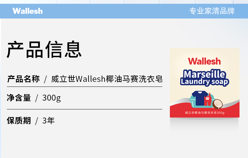 威立世Wallesh椰油马赛洗衣皂规格:300g