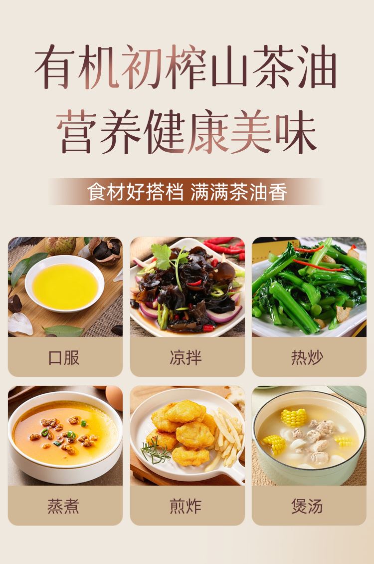 等级:一级 榨取工艺:冷榨 是否有机:有机 包装形式:瓶装 加工工艺:压榨 包装规格:1瓶 保质期:540天 包装清单:有机初榨山茶油2L*1 有机初榨山茶油2L,原香风味茶籽油,0零反式脂肪酸,一级茶油