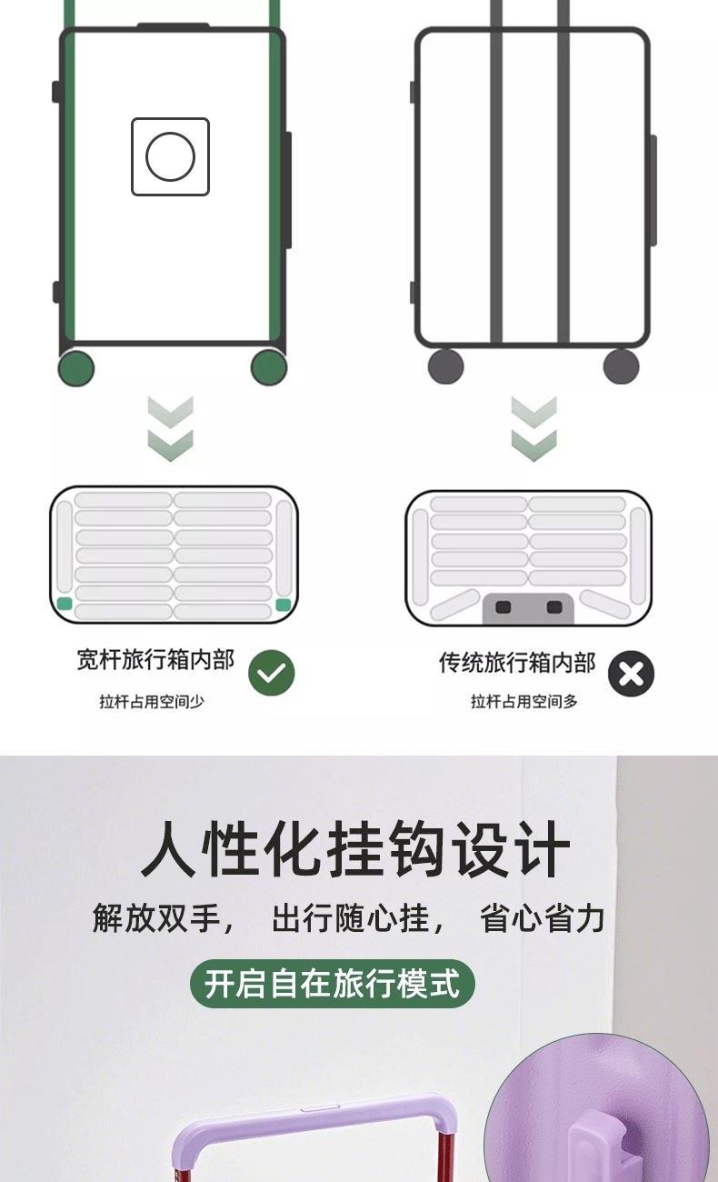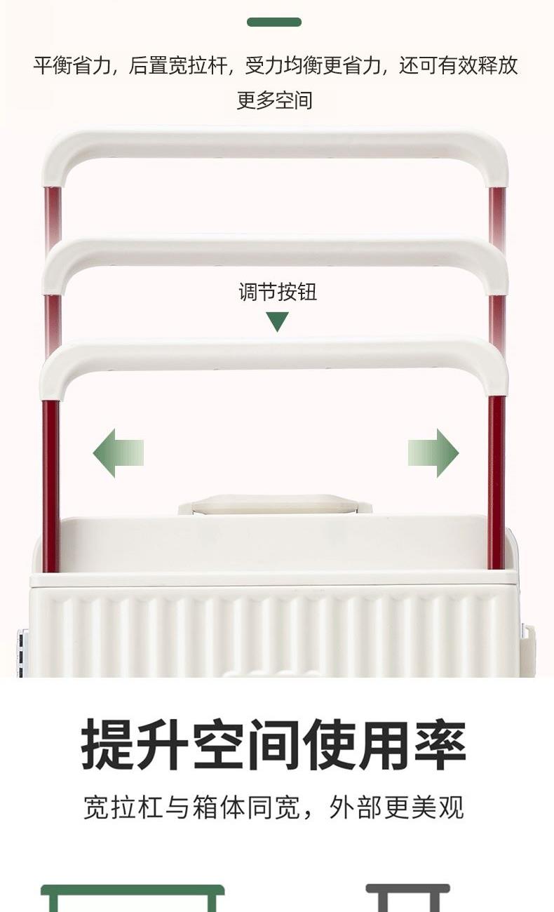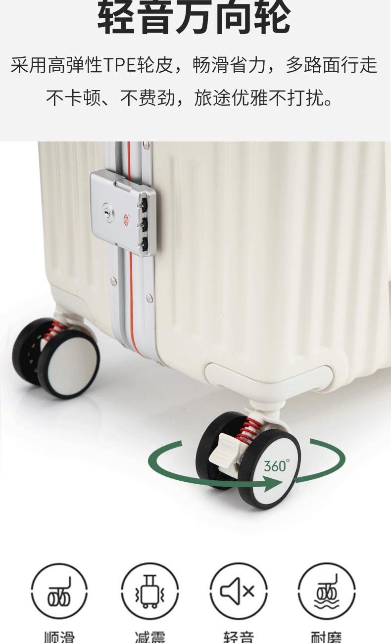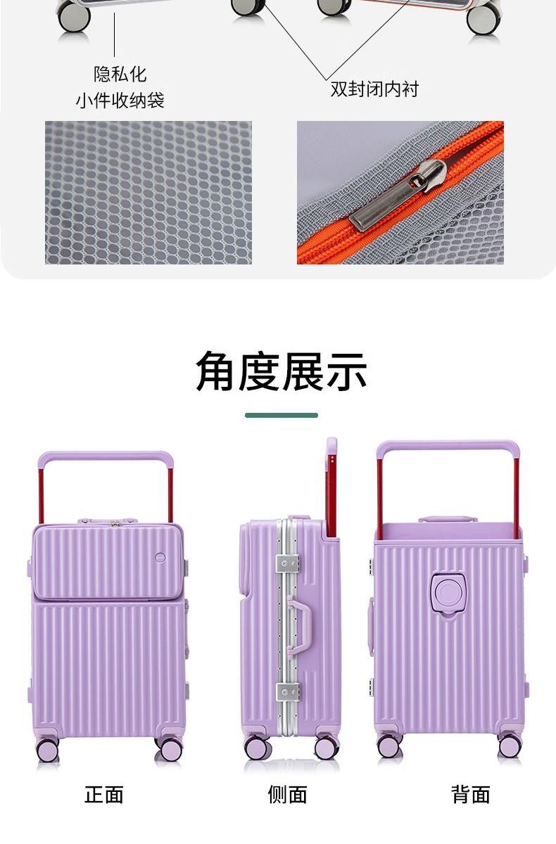 箱壳采用三层复合材料,坚固强韧受到冲击可有效回弹,合金宽拉杆,受力均匀省力又稳固,后置拉杆更省空间,箱内空间使用率更高;前置开口设计,即用物品方便拿取,后置可折叠便携杯架,咖啡、水杯、雨伞都可放这,侧边实用挂钩,更多隐藏功能期待你的解锁,轻音万向轮,采用高弹性TPE轮皮,畅滑省力,多路面行走不卡顿、不费劲,旅途优雅不打扰;嵌入式密码锁,安全出行有保障,大容量双封闭内衬,分区收纳更合理,轻松出行无负担~ 新疆/西藏/内蒙不发,四川凉山彝族、攀枝花市、甘孜藏族、阿坝藏族羌族运费实际收,无7天无理由退货