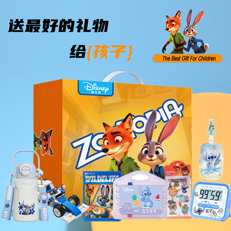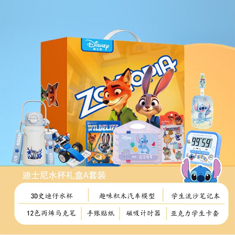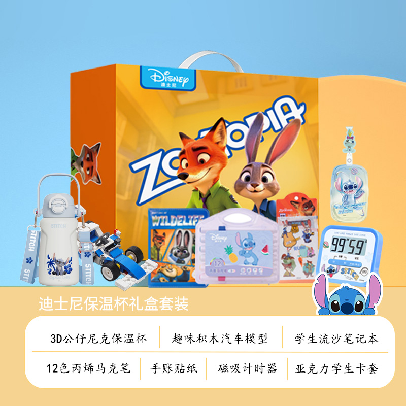 迪士尼疯狂动物城儿童保温杯玩具、文具大礼包套装7件套8882