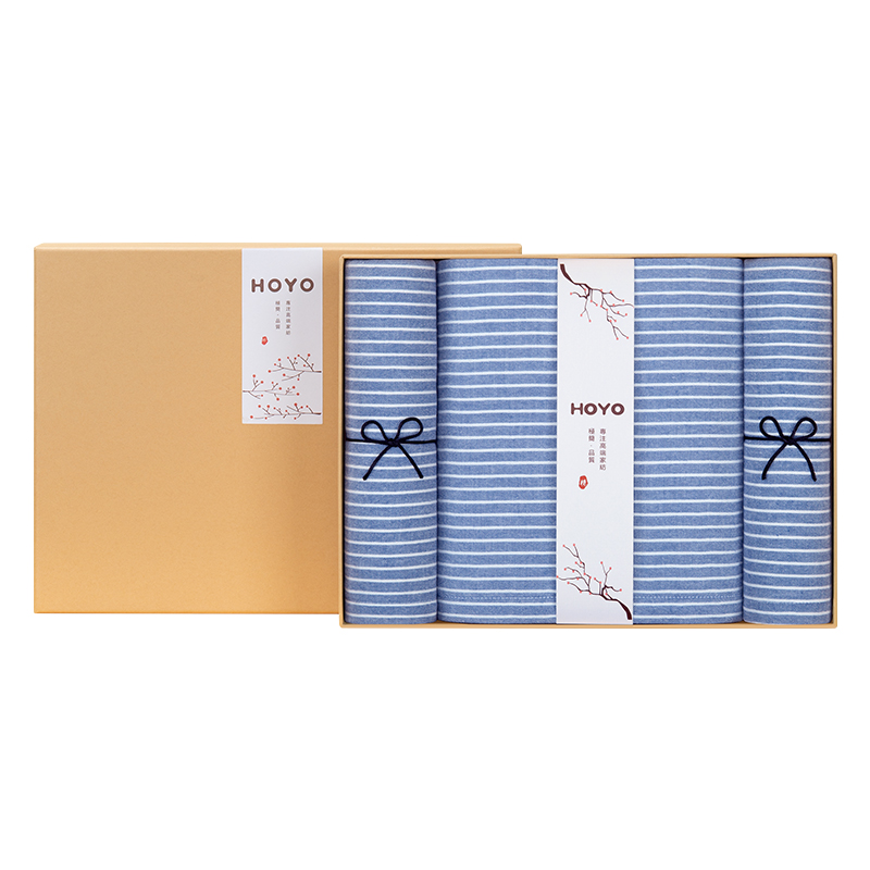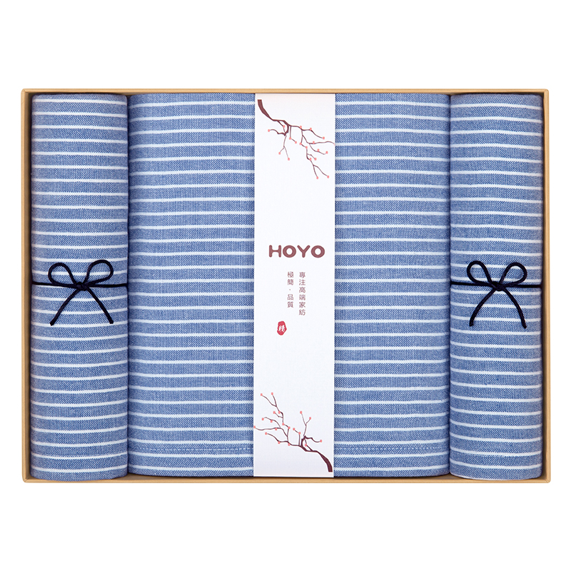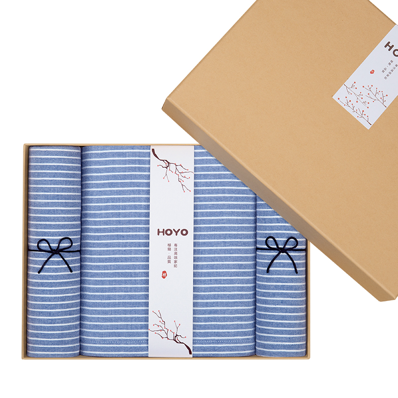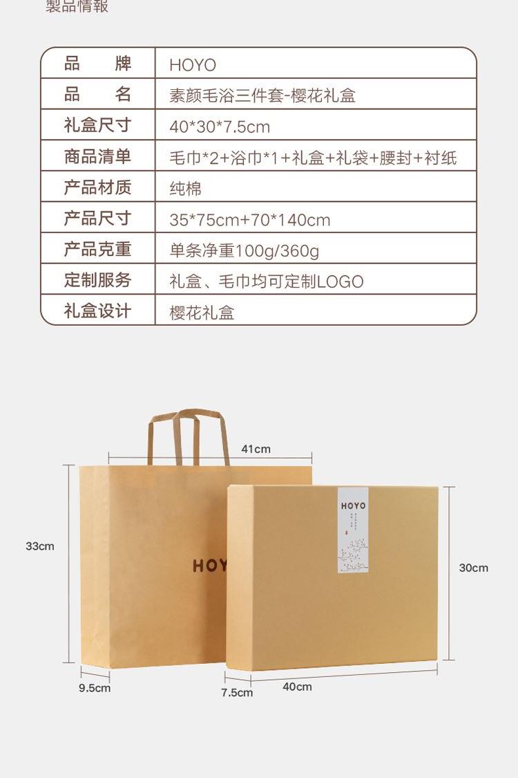 HOYO/3596素颜毛浴三件套樱花礼盒毛巾*2浴巾*1蓝色