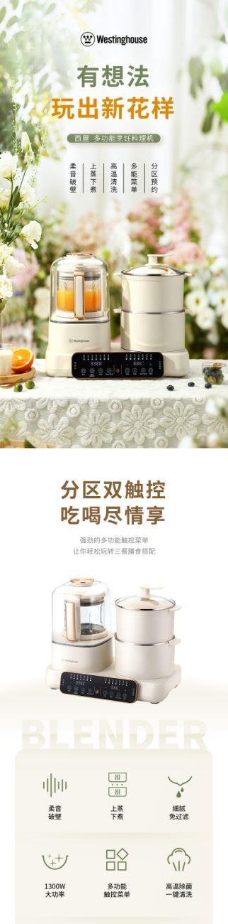 产品规格: 1、额定电压:220V~50Hz 2、破壁机加热功率:600W 3、破壁机搅拌功率:500W 4、多功能锅加热功率:700W 5、破壁机容量:1200m 产品特点: 1、一台顶多机,破壁蒸煮两不误; 2、分区双触控,吃喝同时享; 3、双12小时智能预约,6小时长效保温,可同时可分开操作; 4、破壁机搭配隔音罩,轻声运作,柔音破壁不怕吵; 5、多功能锅内胆材质304不锈钢,食品级PP蒸笼,使用更放心; 6、底部防震吸盘,稳固吸附,减少震动及噪音。
