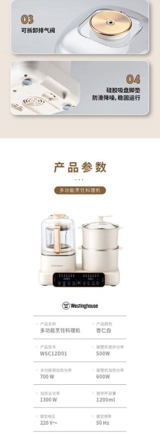 • 西屋Westinghouse多功能烹饪料理机WSC12D01