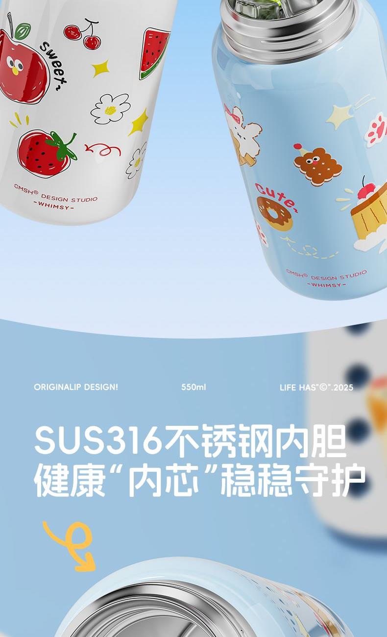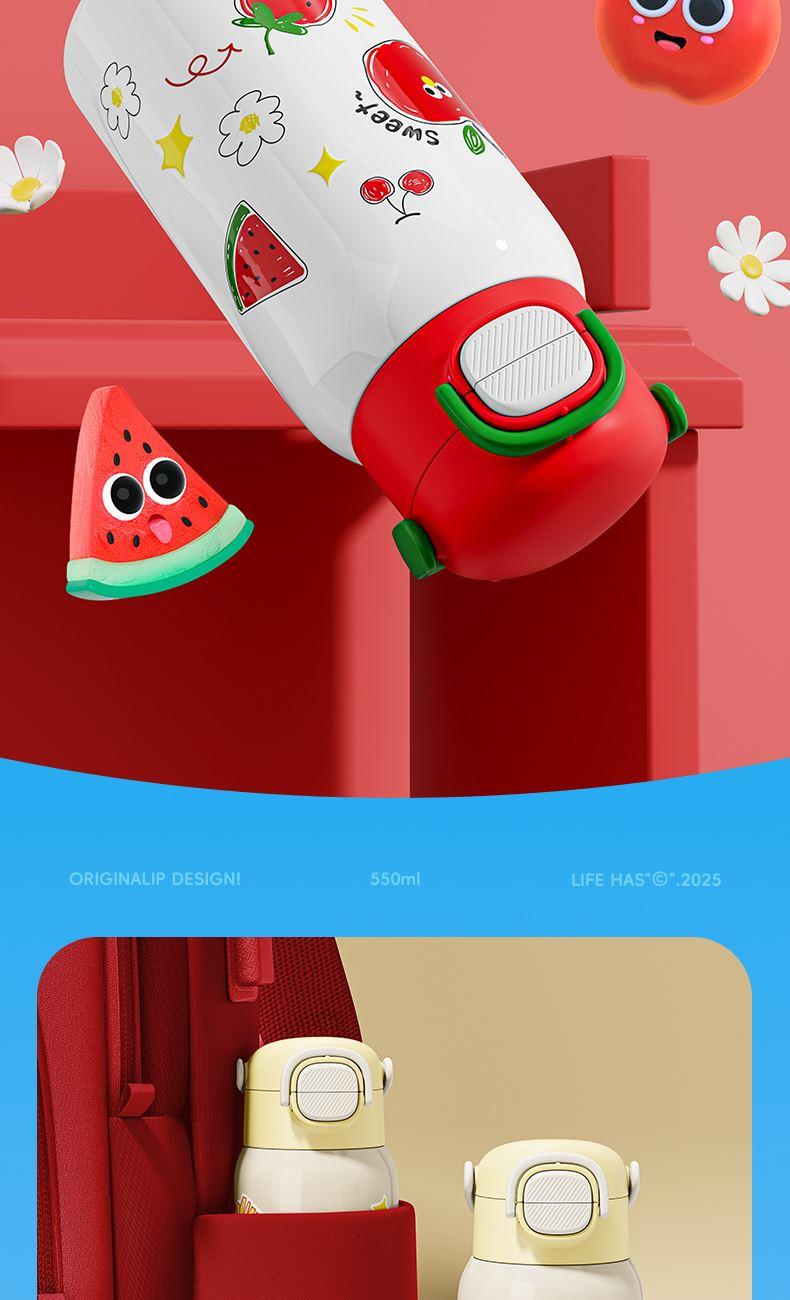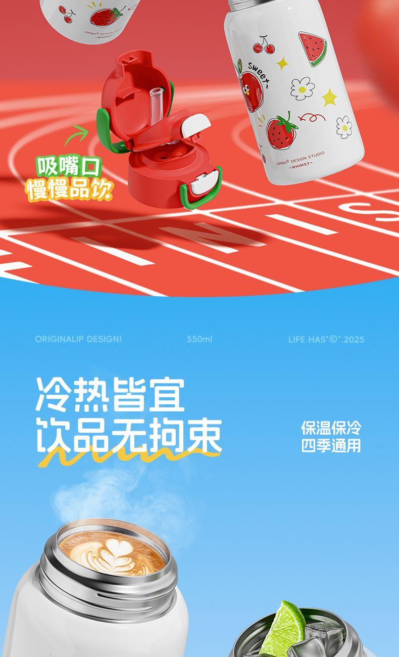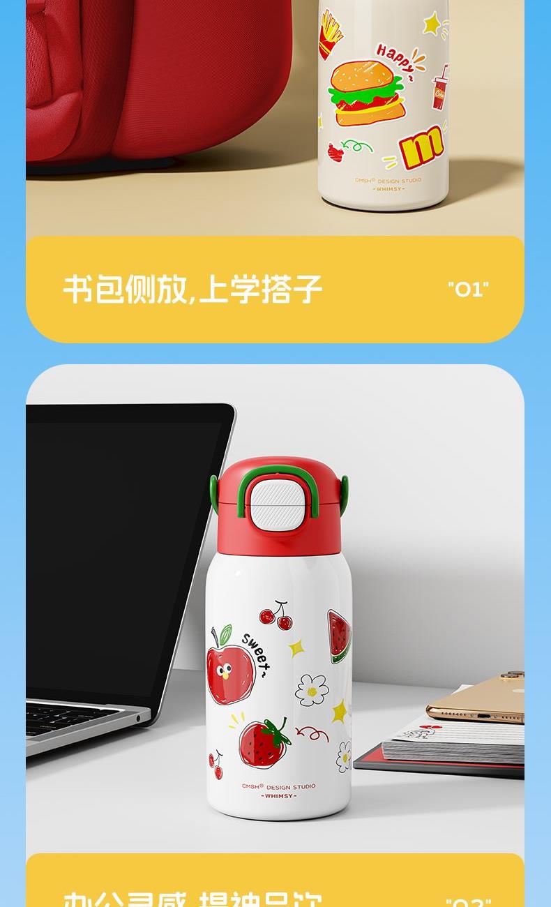 草莓生活0109小学生水杯男孩杯子带盖儿童保温杯316食品级