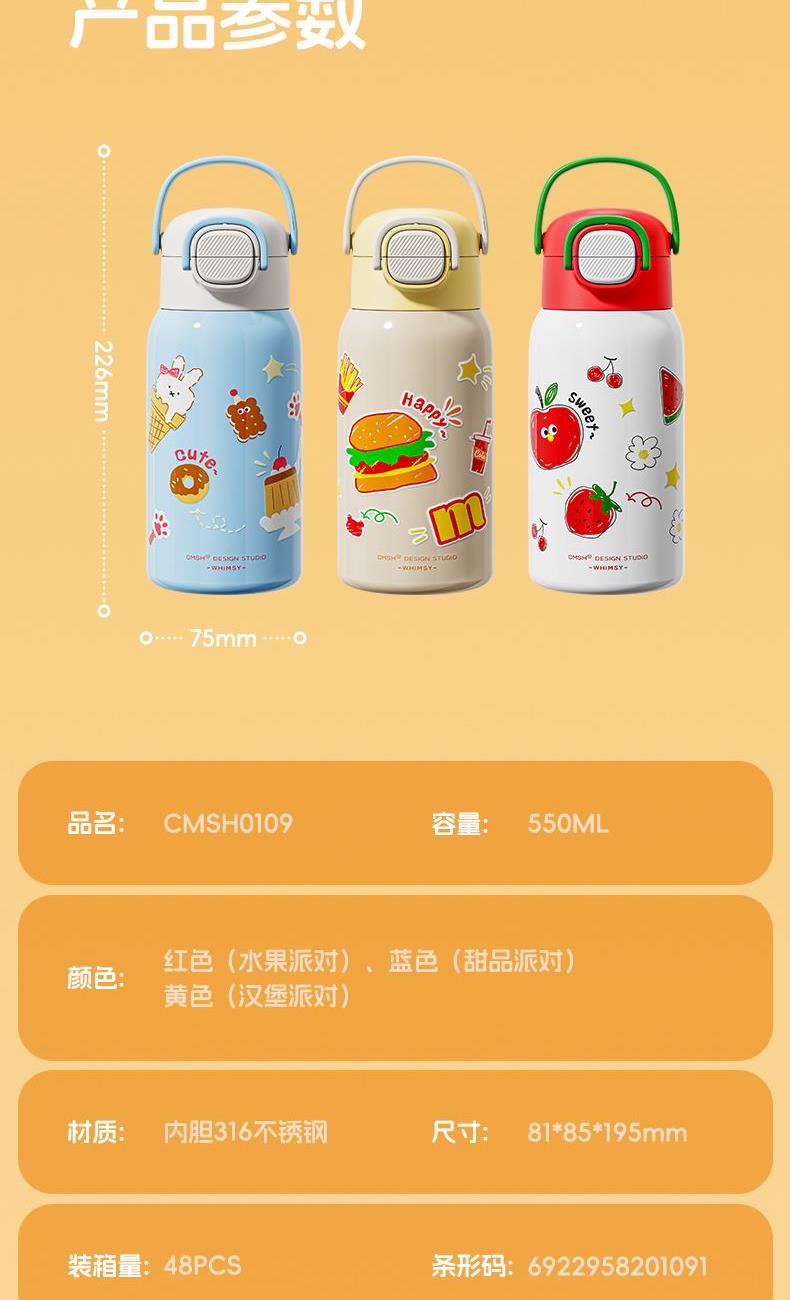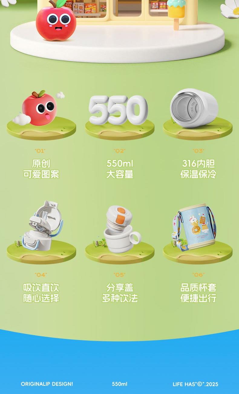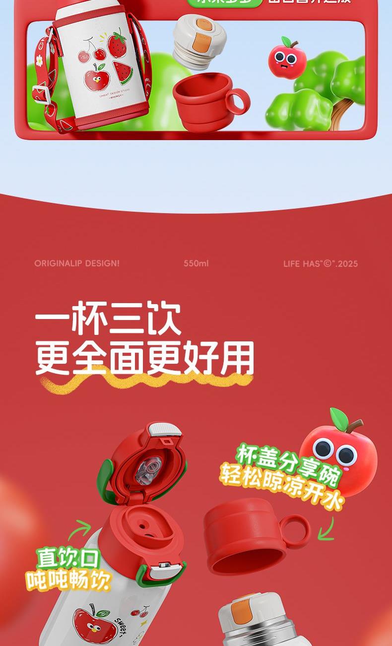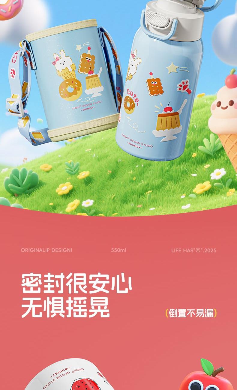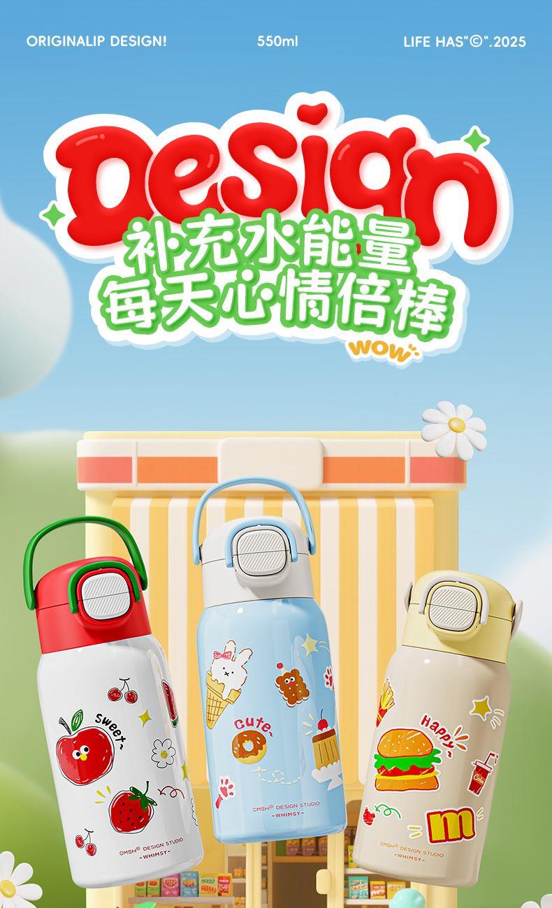 草莓生活0109小学生水杯男孩杯子带盖儿童保温杯316食品级