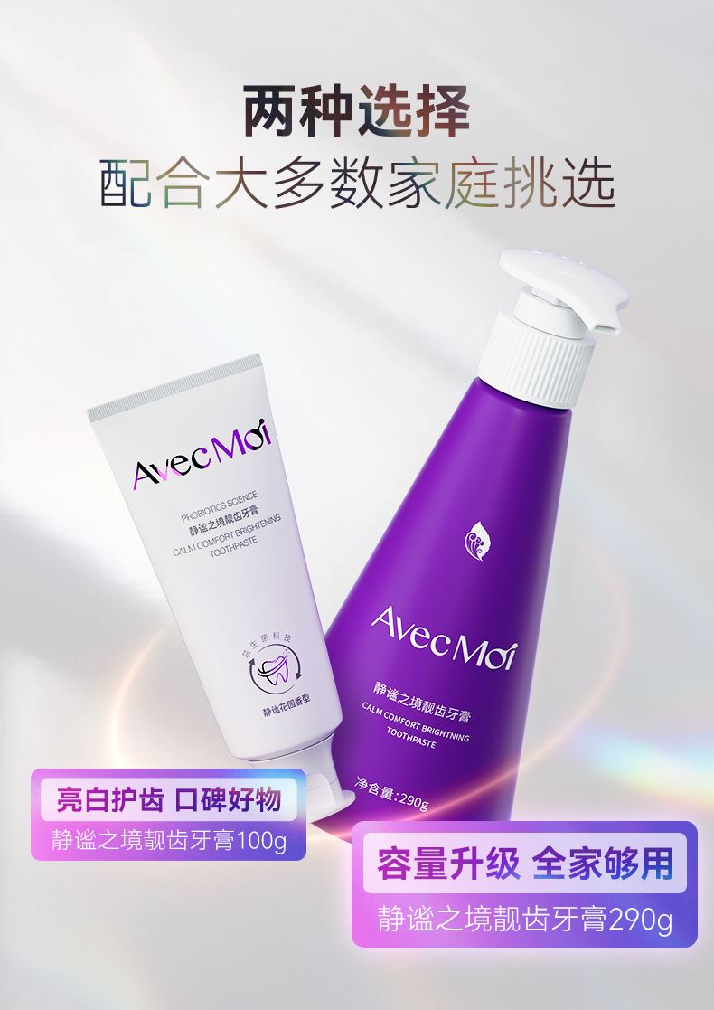 AvecMoi静谧之境益生菌亮白按压牙膏一瓶*290g