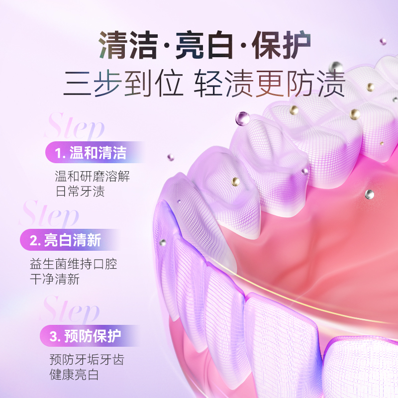 容量:290g 型号:YG-JM290-1 1.添加口腔益生菌ADP-1成分,细致清洁,另牙齿更加洁白健康,帮助牙齿形成护齿屏障,防护色素侵袭。 2.液态膏体,可干刷,无需沾水直接清洁,更容易摩擦起沫,渗透牙齿缝隙,清洁效果更佳。 3.一次一泵,定量释放,无需拧盖快人一步,防倒流泵头隔绝空气,干净卫生不浪费。