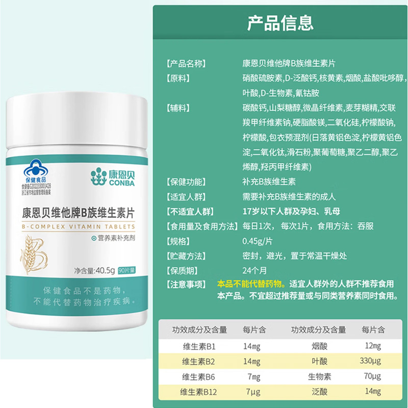 0.45g/片*90片 为支持中国成年人群B族营养补充科学配比补充每日所需 均衡补充,健康甄选,8种B族营养素 一片补充 高活性,先进包衣技术,高效包裹成分 蓝帽产品 功能明确