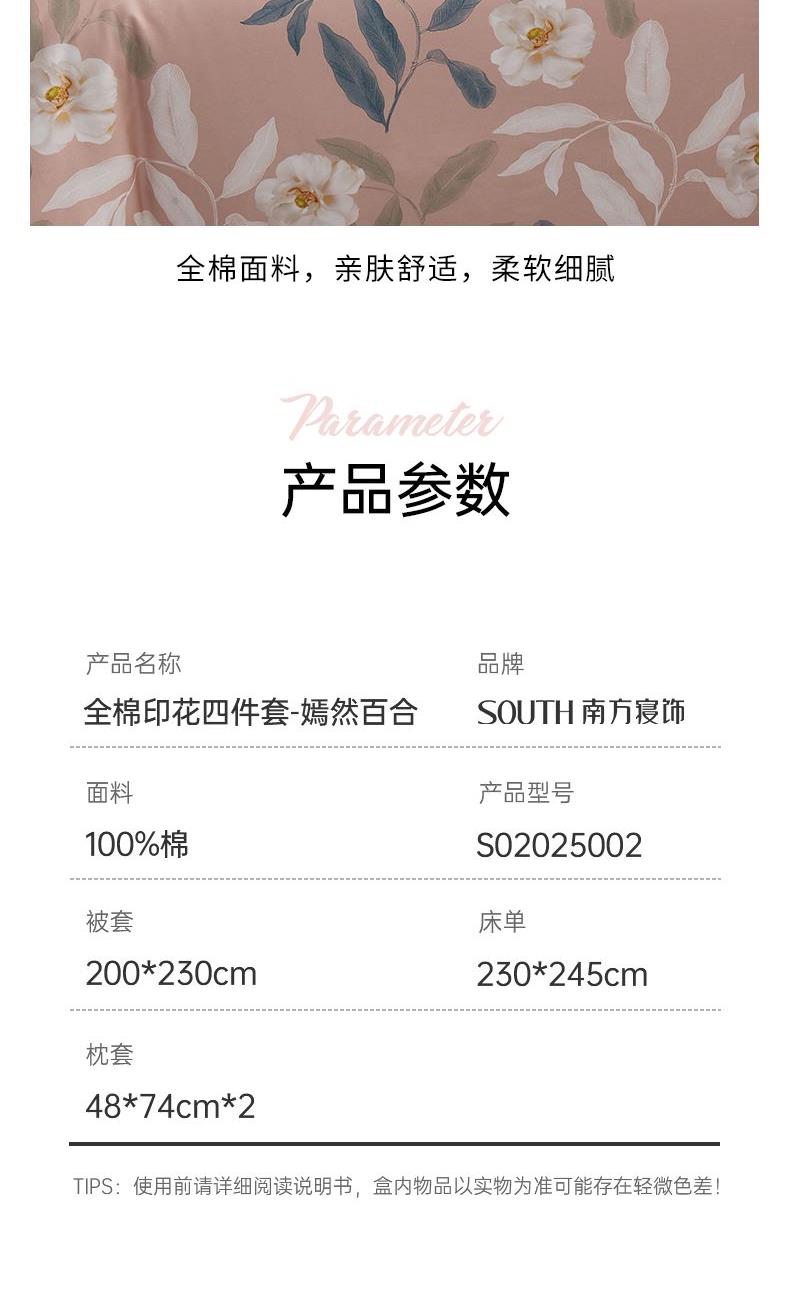 南方寝饰全棉印花四件套-嫣然百合S02025002
