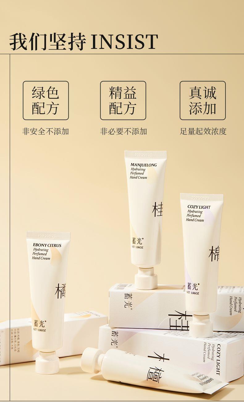 型号:护手霜系列 容量:30g 功效:滋润保湿,抗氧修护,香水级香氛护手霜 储存方法:阴凉干燥处保存