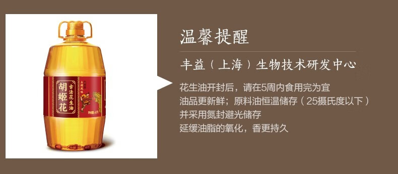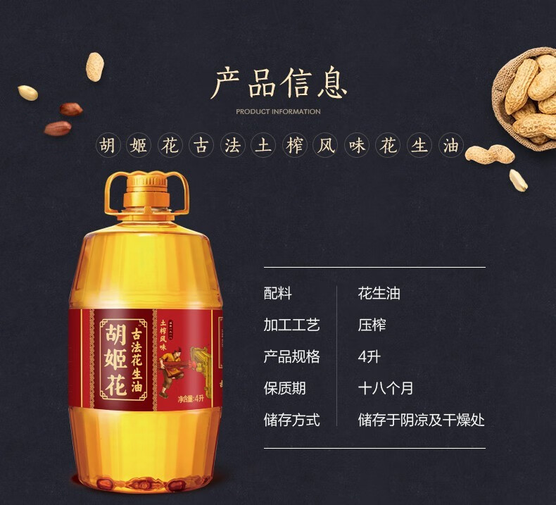 胡姬花土榨风味古法花生油4L