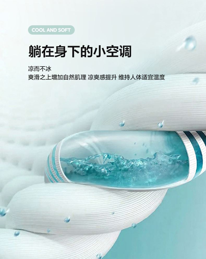 规格:180*200cm 枕套:48*74cm*2 面料:凉感丝 填充:泰国乳胶 执行标准:Q/TDY 01-2016 安全类别:GB18401-2010 B类 1.采用凉感丝面料,科技凉感纤维,内外导热,天生自带凉感,持续凉爽一整夜; 2.填充可以水洗机洗,柔软透气,80000000+透气孔,加倍散热,时刻保持清凉; 3.活性环保印染,A类安全标准,母婴和敏感肌肤即可使用。