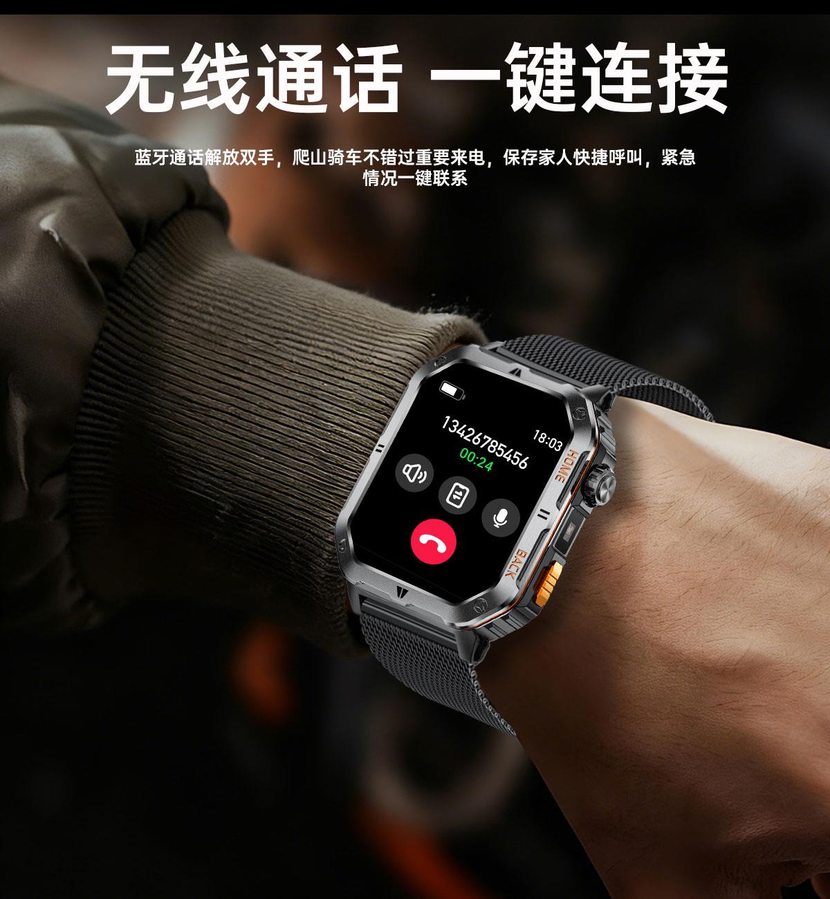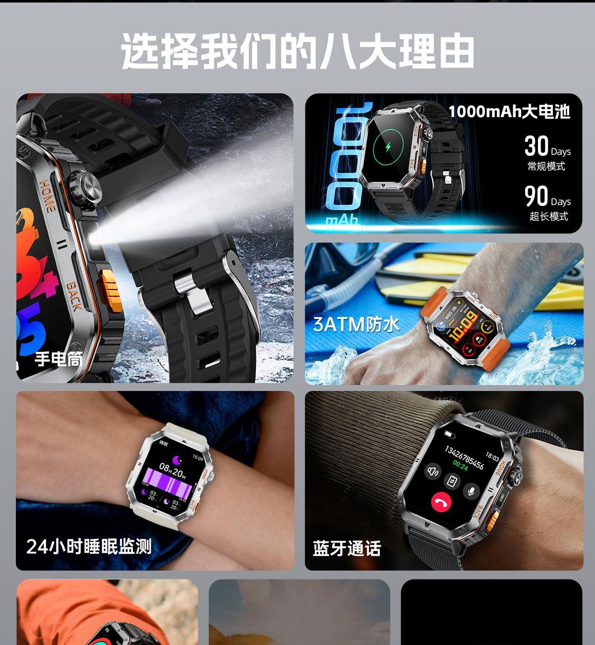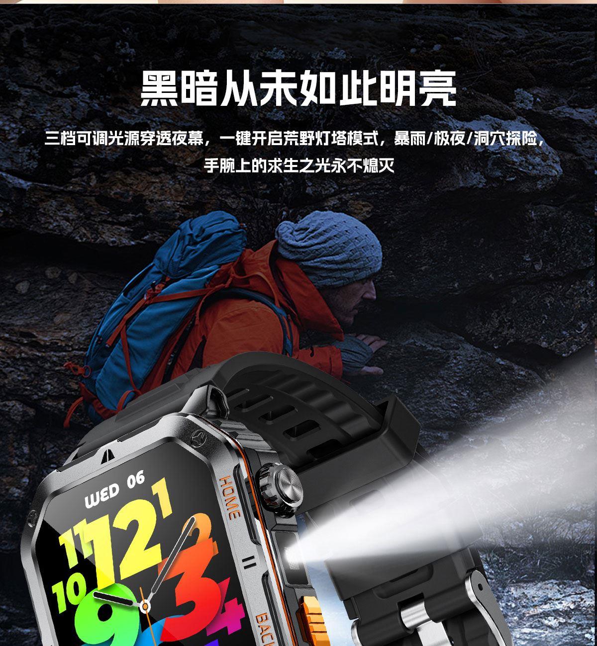 • LIGE利格军工系带手电筒蓝牙通话智能手表BWMT62