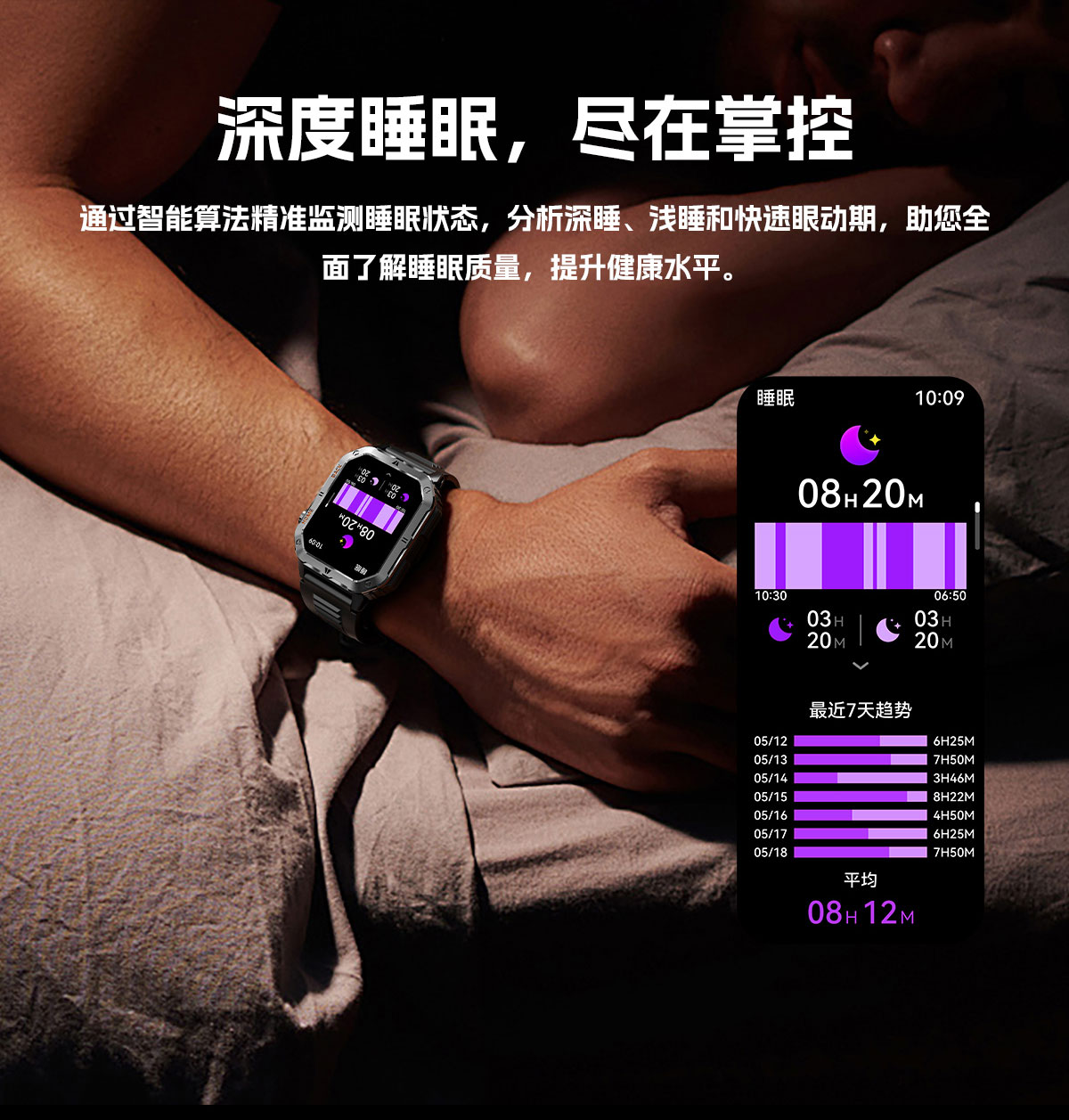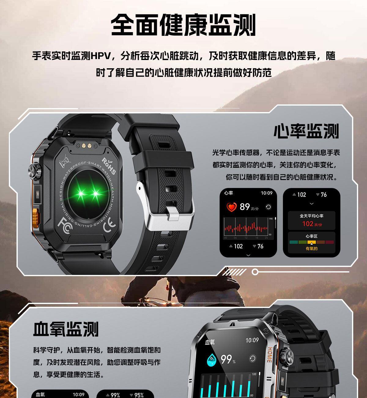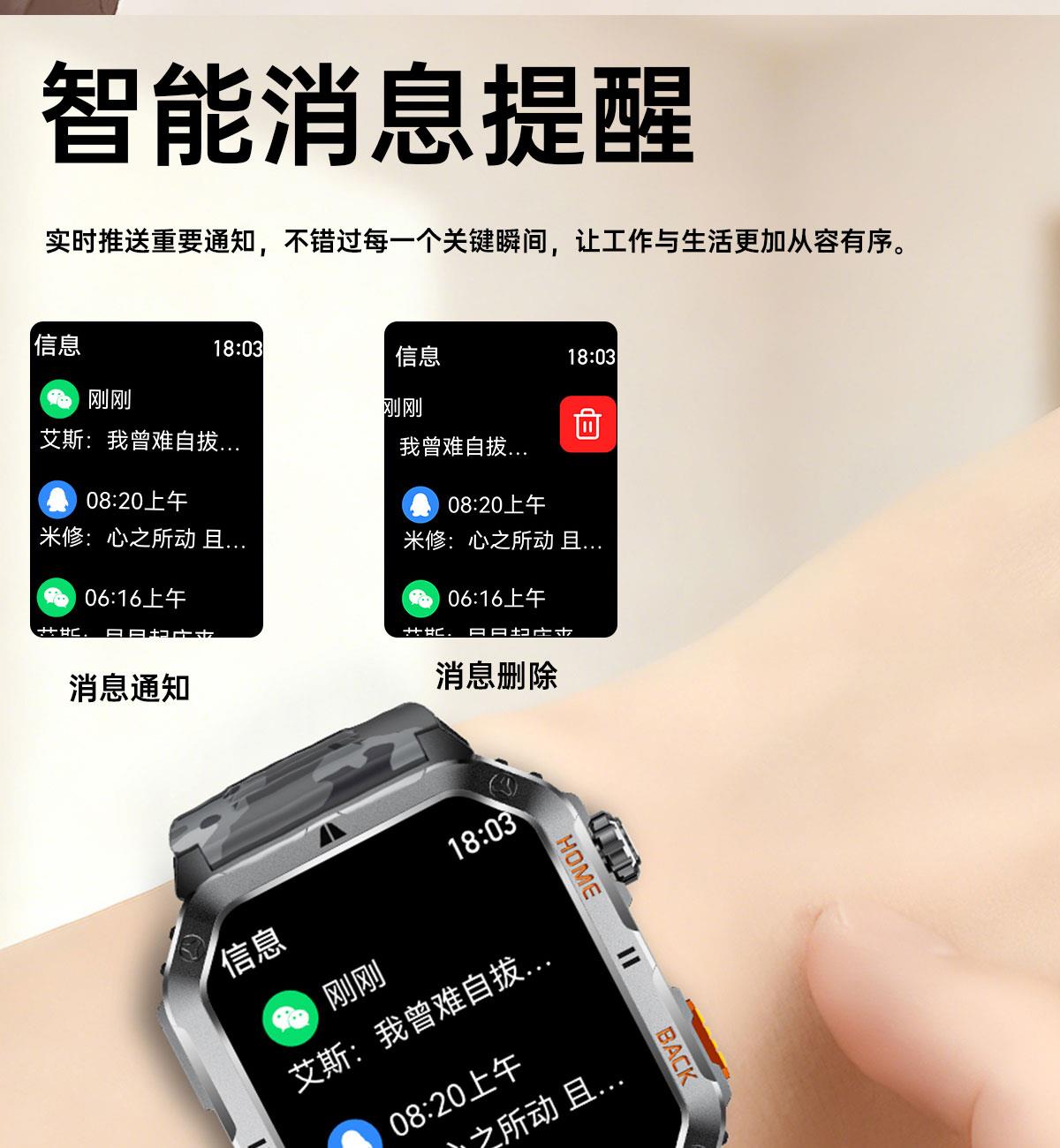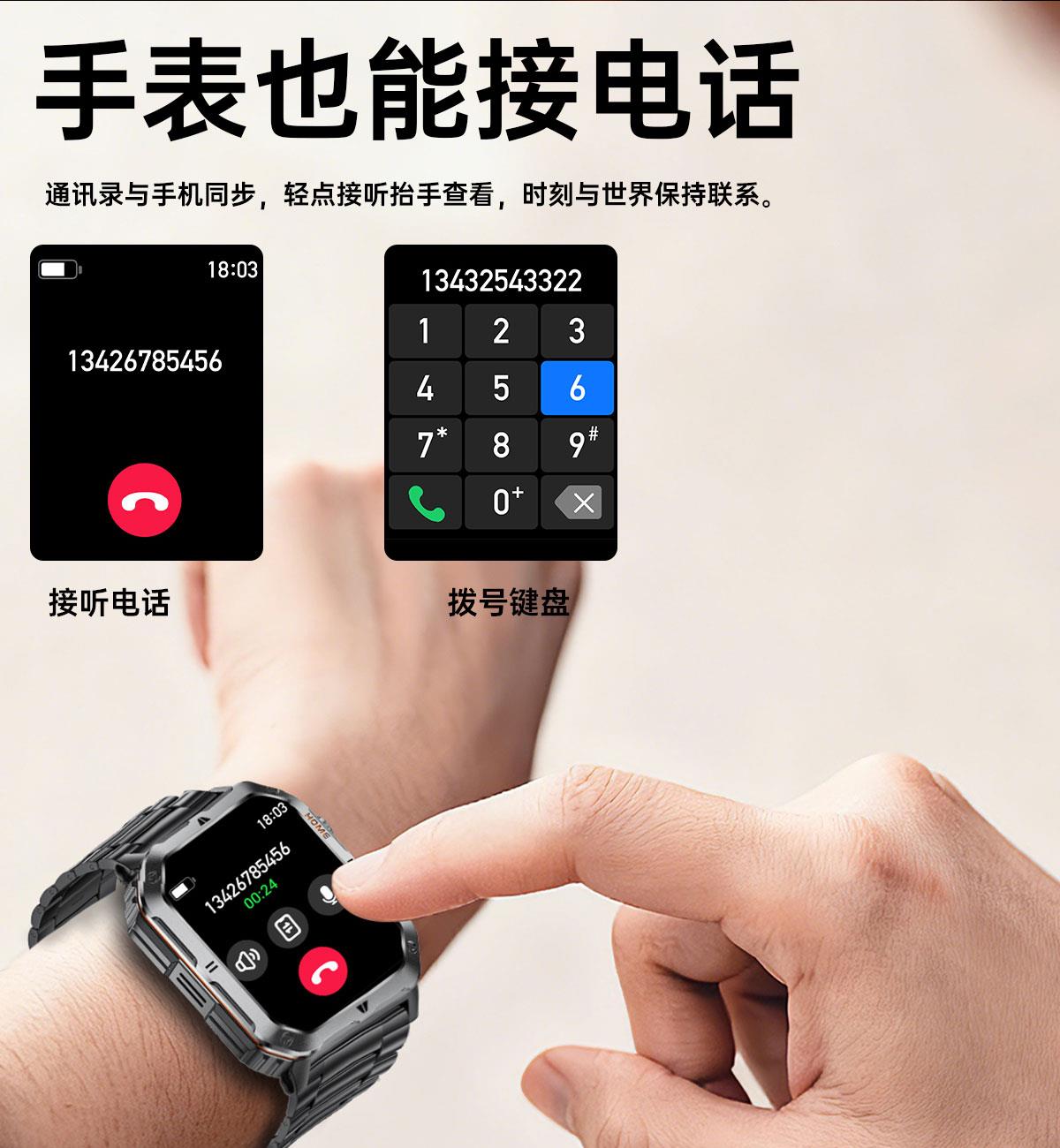• LIGE利格军工系带手电筒蓝牙通话智能手表BWMT62
