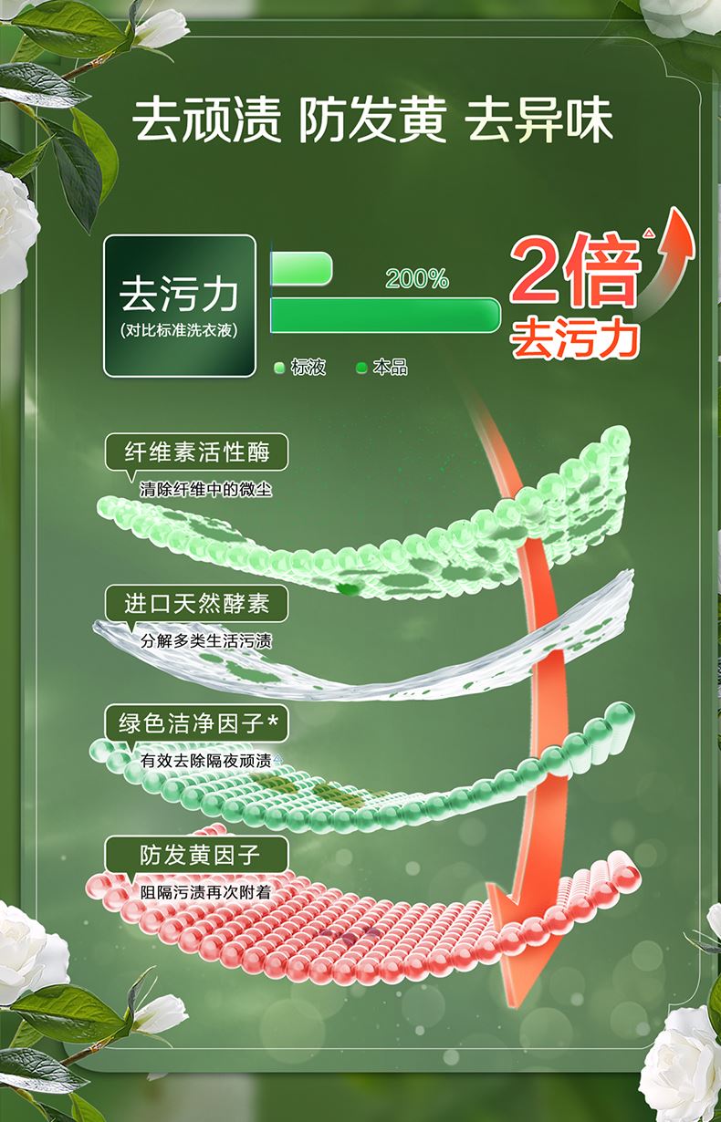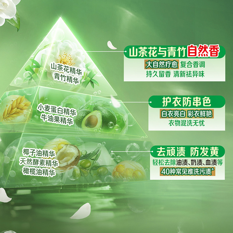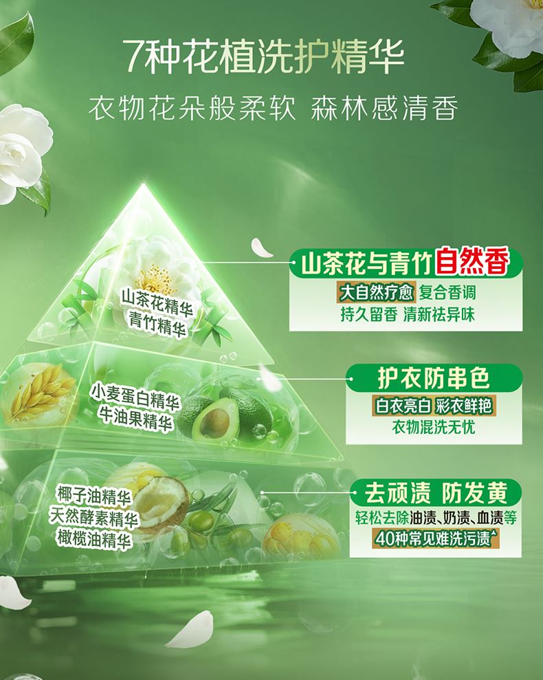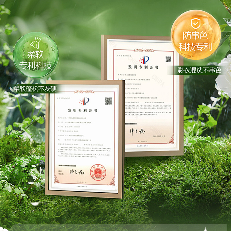 保质期限:3年 主要成分:表面活性剂、防串色剂、抗再沉积剂、着色剂、香精、防腐剂、柔软因子、天然来源成分(天然椰子油精华、棕榈油精华、天然酵素、烷基糖苷APG、山茶花精粹、牛油果提取物、柠檬香茅提取物) 产品功效:洁净更柔软 防发黄变 适用范围:棉麻混纺、内衣内裤、宝宝衣物、孕妇衣物