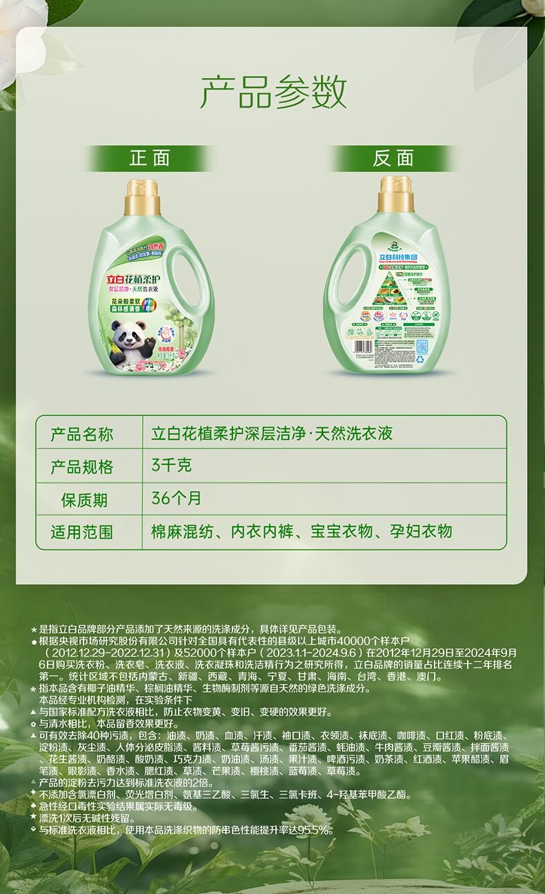立白花植柔护深层洁净天然洗衣液3千克
