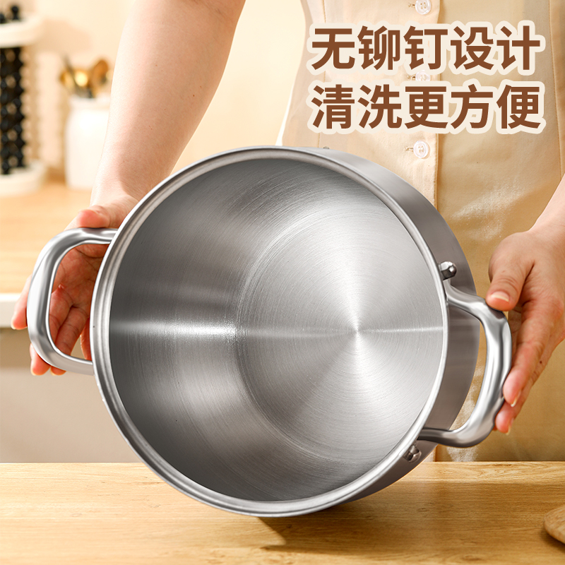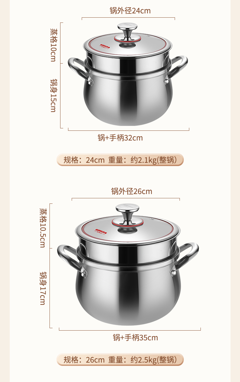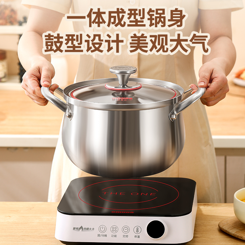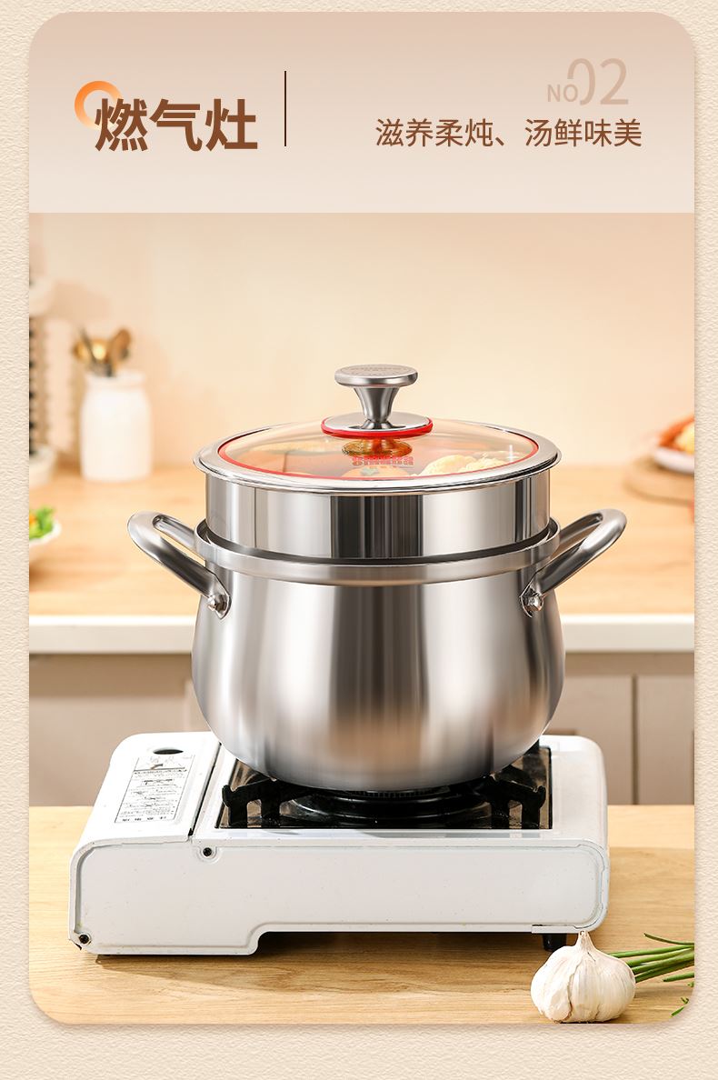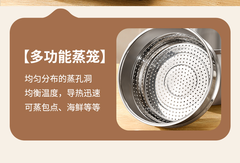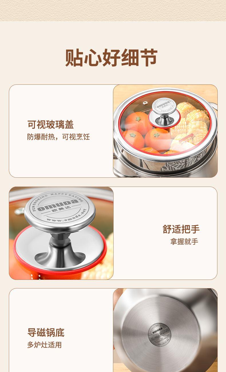 材质:316不锈钢 功能:①小巧锅身+大容量的黄金比例,轻松满足宝宝1-3餐辅食量,新手妈妈操作零负担。 ②316不锈钢,烹饪更健康更安心。 ③鼓型锅身一体冲压成型,无铆钉设计,清洗更方便 ④ 搭配蒸格,轻松实现蒸煮两用,加高加深锅边设计,有效防止汤汁外溢 ⑤电磁炉/燃气灶/电陶炉通用不挑灶具