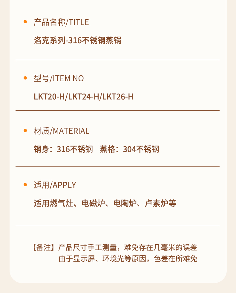 洛克系列-316不锈钢蒸锅26CM(5.5L)LKT26-H