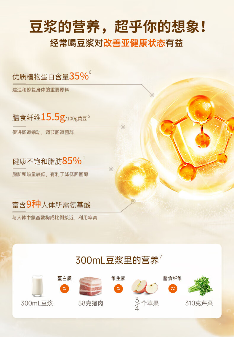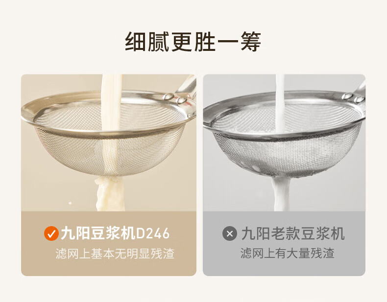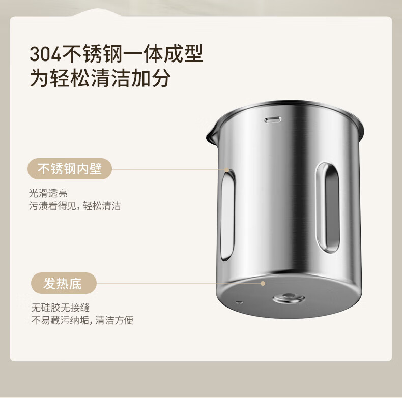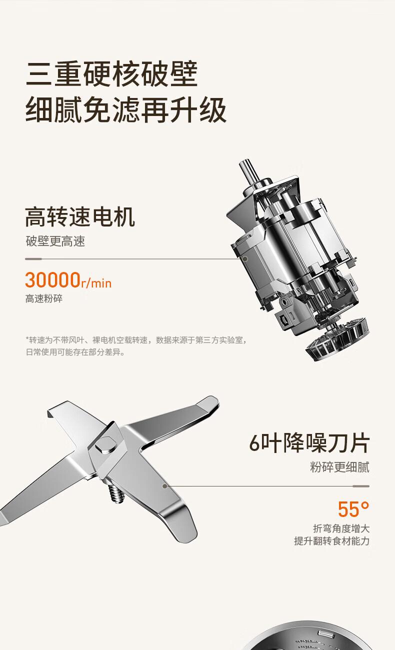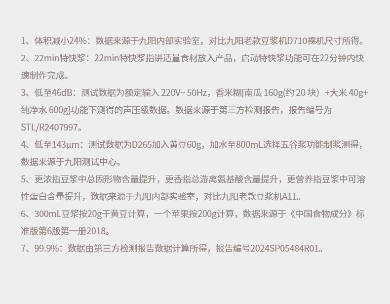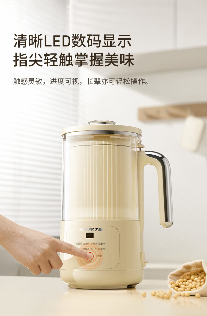 噪音低至45dB; 小巧不占地,简易好拆装; 22min特快浆; 细腻免滤,营养香浓; 双口感可调 容量:1000mL 单台包装尺寸:245L*245W*400Hmm