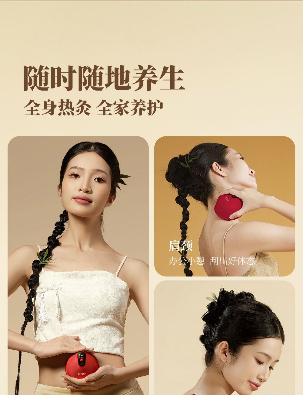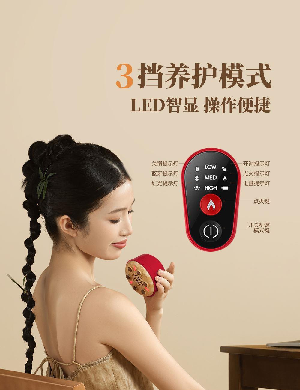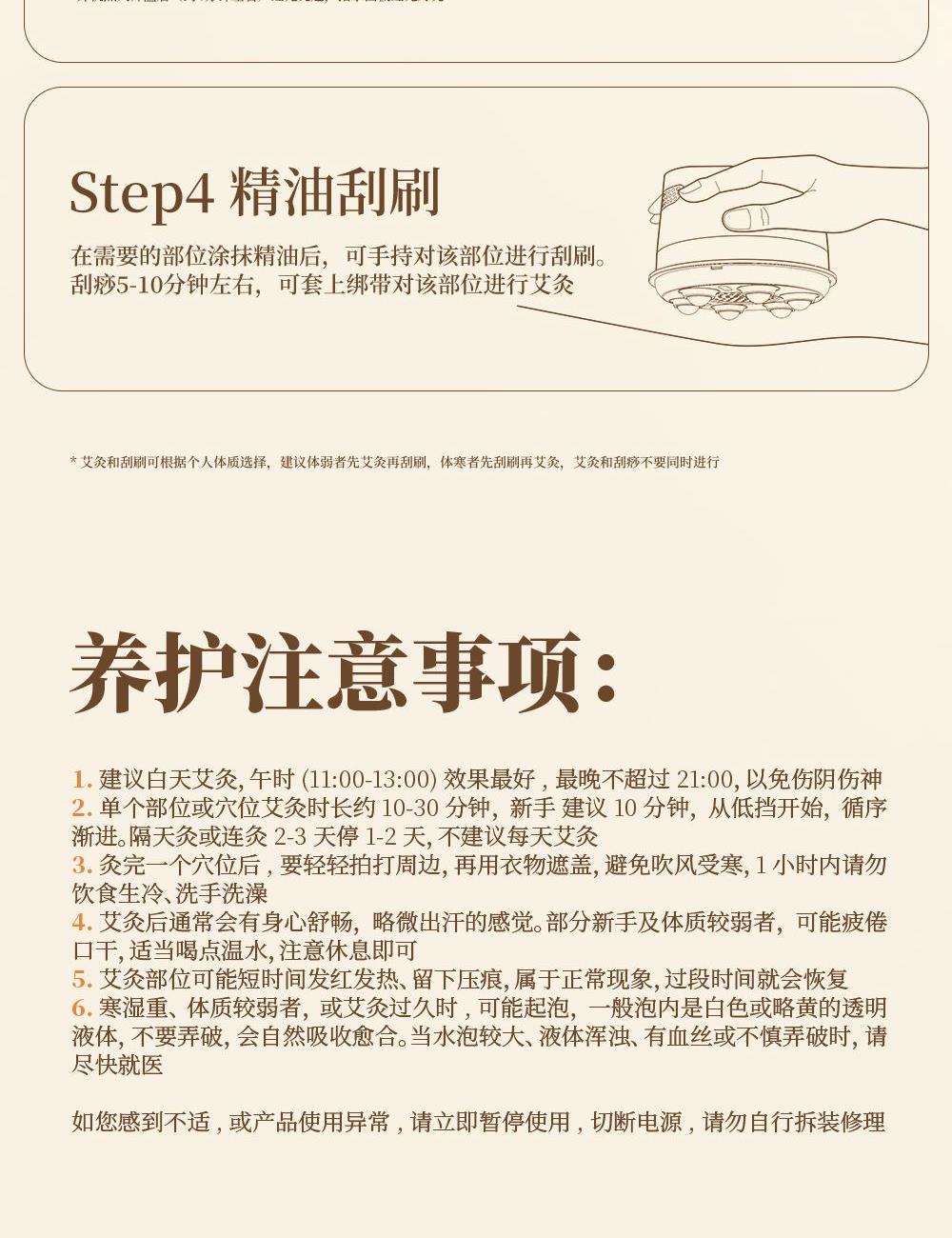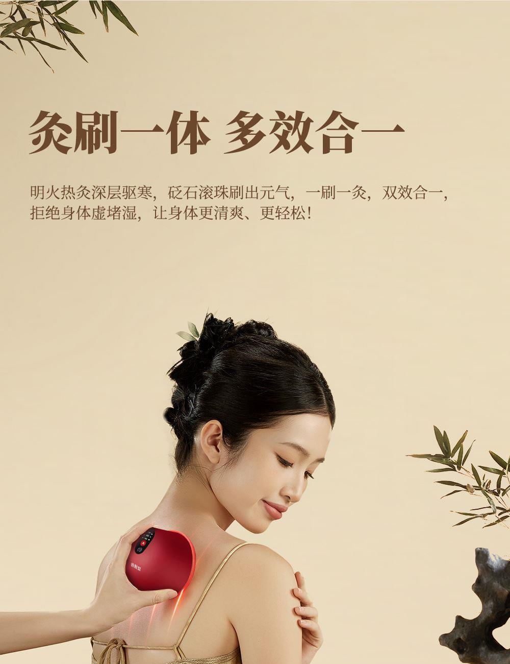 砭灸一体多效合一 养出好元气; 明火热灸深层驱寒,砭石滚珠刷出元气,一刷一灸,双效合一,拒绝身体虚堵湿,让身体更清爽、更轻松! 6颗10mm泗滨砭石,不仅能释放微量元素,还能有效引导艾能渗透皮肤;搭配玫瑰精油,柔和不刺激,360°灵活走刮全身,疏养合一,刷出好气色、好身材! 打开breoApp和breo+小程序,养生知识、艾灸穴位指导个性化护理方案应有尽有;按摩温度、时间、自动点火一目了然无论是艾灸小白,还是新手妈妈,都能轻松操作; 专研配方的蕲春陈艾,自然草本能量直达深层玫瑰精油搭配刮刷,温润不刺激;红光热疗,暖透肌肤三效合一,全家元气满满。
