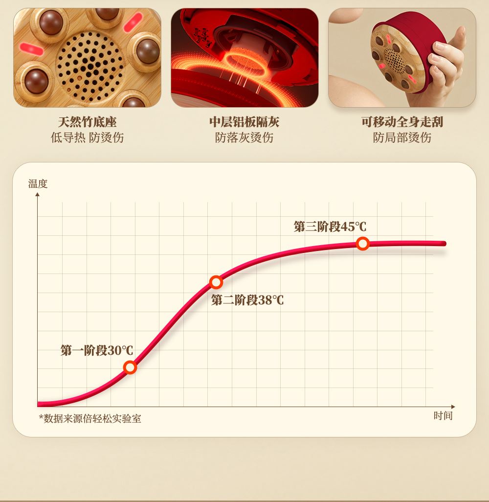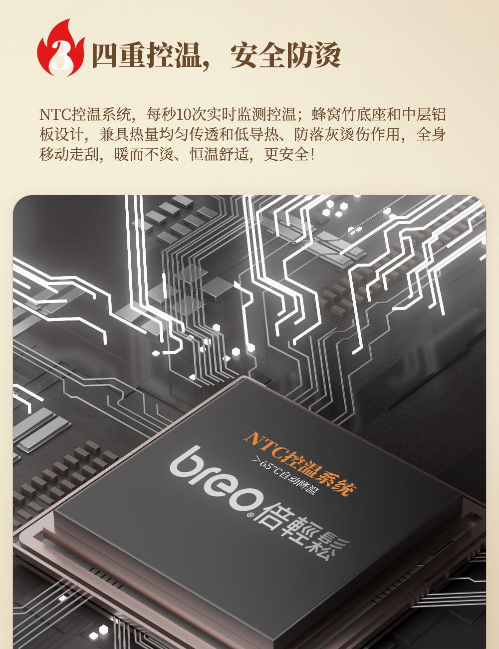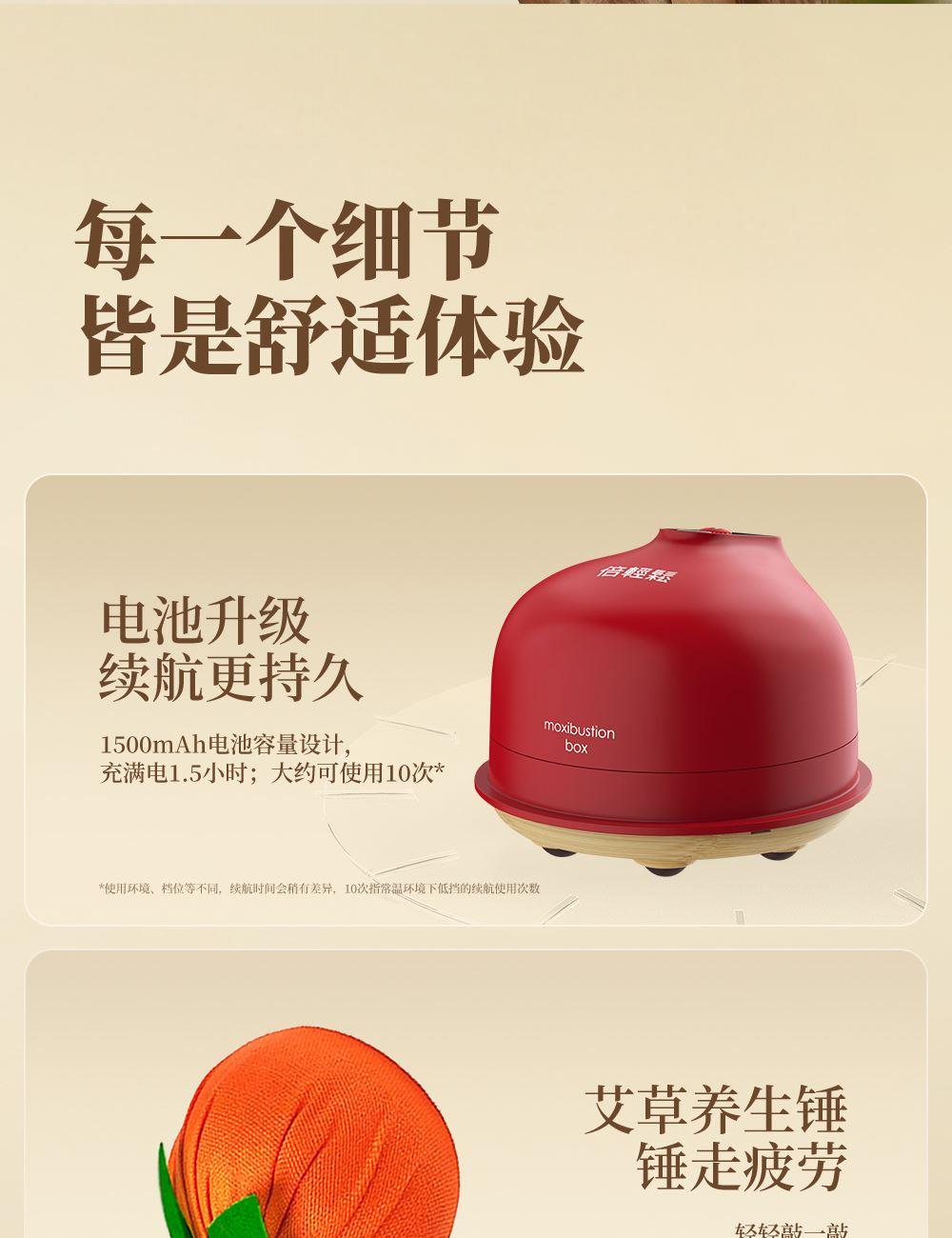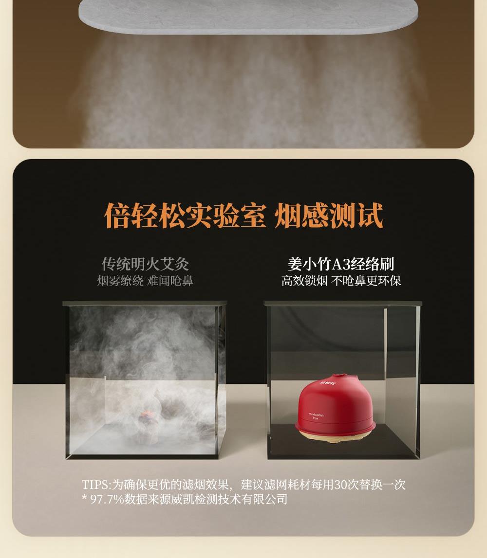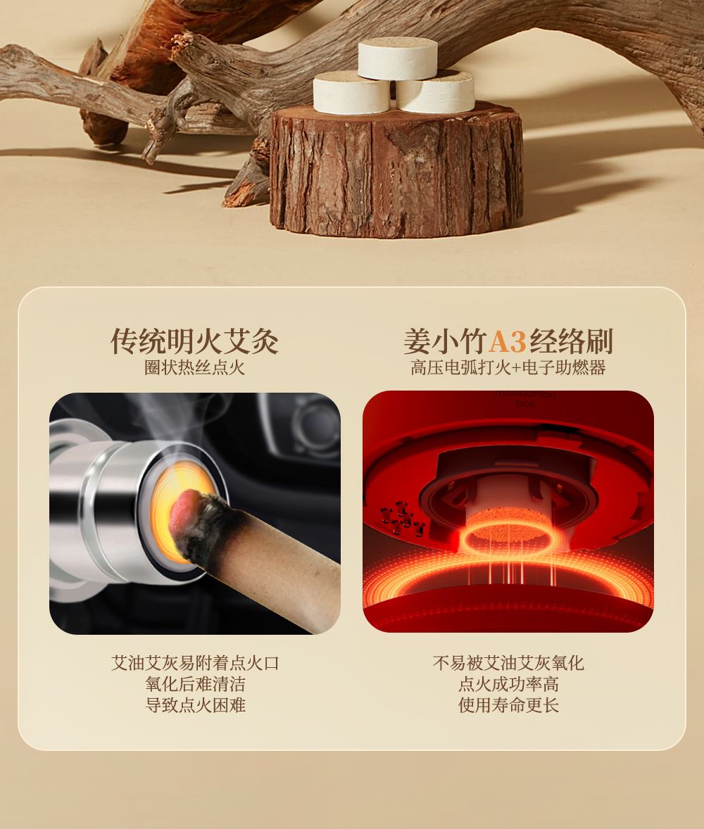砭灸一体多效合一 养出好元气; 明火热灸深层驱寒,砭石滚珠刷出元气,一刷一灸,双效合一,拒绝身体虚堵湿,让身体更清爽、更轻松! 6颗10mm泗滨砭石,不仅能释放微量元素,还能有效引导艾能渗透皮肤;搭配玫瑰精油,柔和不刺激,360°灵活走刮全身,疏养合一,刷出好气色、好身材! 打开breoApp和breo+小程序,养生知识、艾灸穴位指导个性化护理方案应有尽有;按摩温度、时间、自动点火一目了然无论是艾灸小白,还是新手妈妈,都能轻松操作; 专研配方的蕲春陈艾,自然草本能量直达深层玫瑰精油搭配刮刷,温润不刺激;红光热疗,暖透肌肤三效合一,全家元气满满。