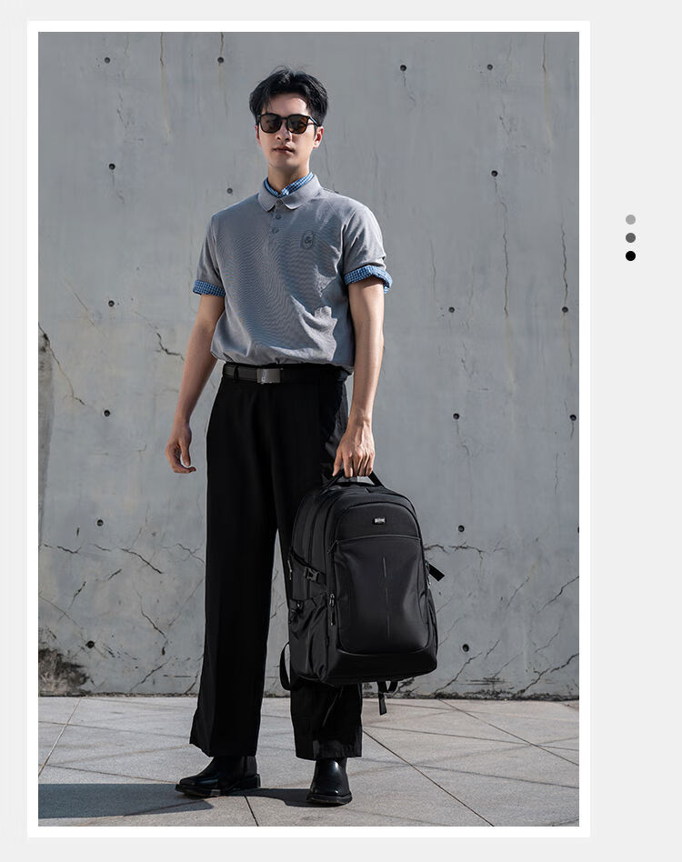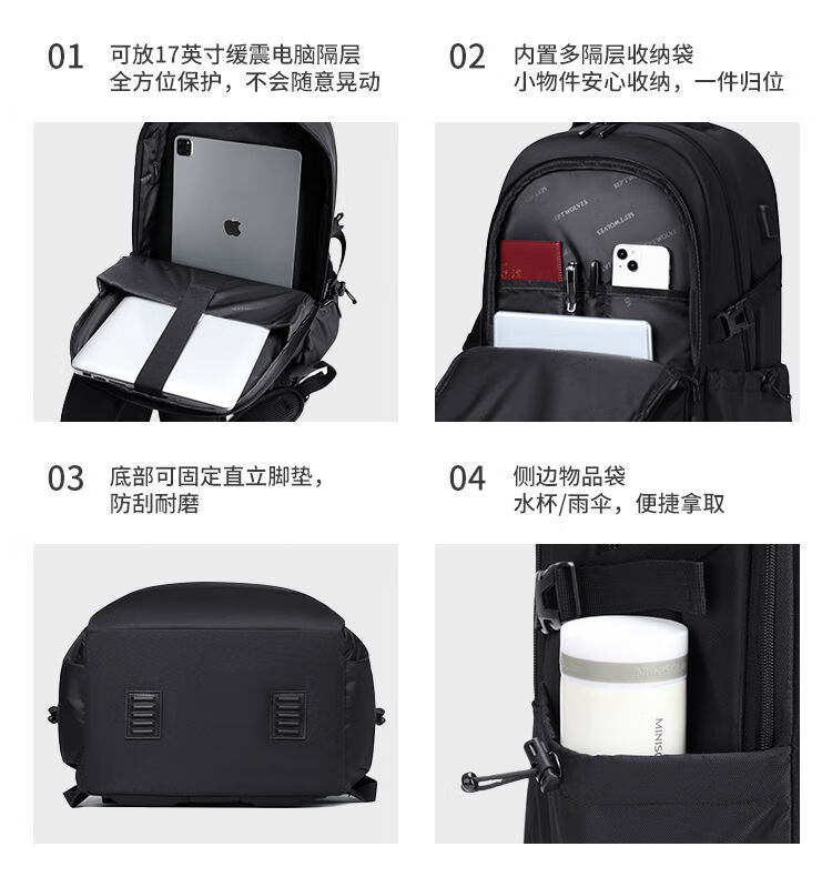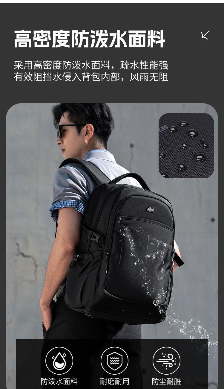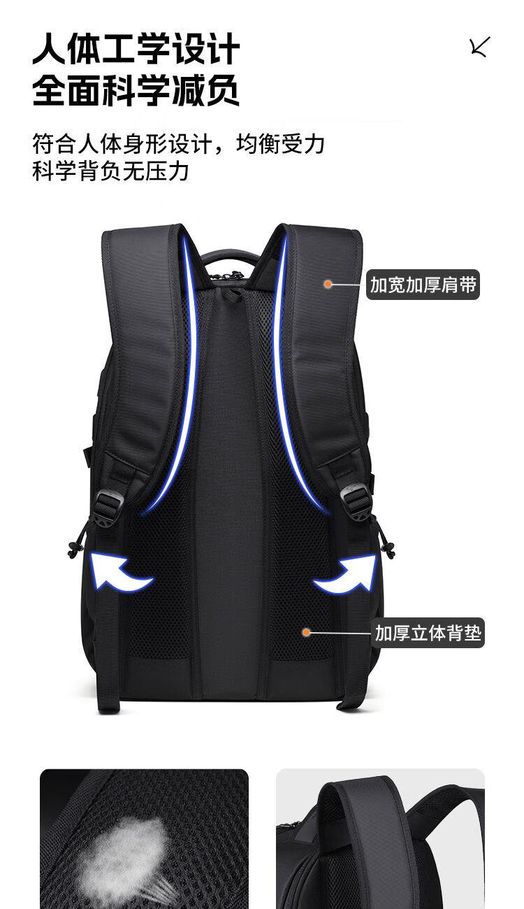 类别:背包 外部材质:织物 闭合方式:拉链 规格:300x150x450mm 容纳电脑尺寸:15.6英寸 风格:通勤风 商务风 携包出行,旅途无忧,立体挺括包型兼顾时尚外观与功能性,轻松驾驭多种都市出行场景 内里大容装载,多层收纳空间,满足多样收纳需求,轻装出行,采用高密度织物面料,防刮耐用,防泼贱,轻松应对泼水,便携外置USB充电接口,3D透气蜂窝设计,柔软减压肩带