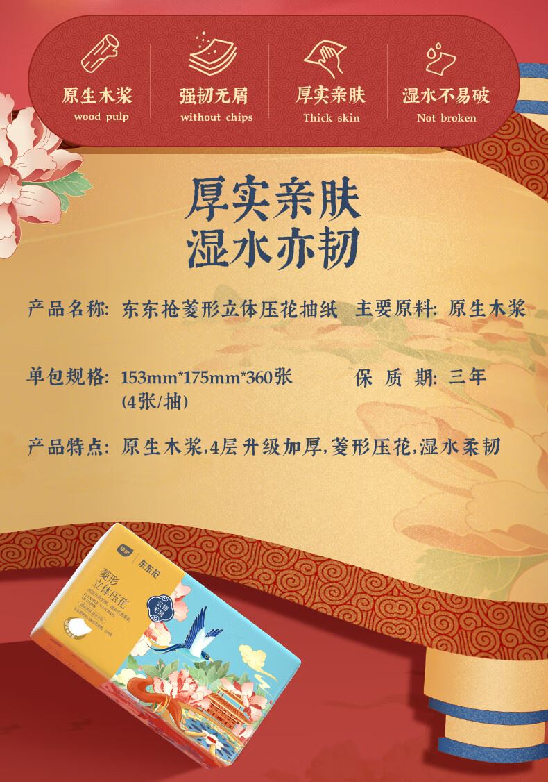 植护东东抢国潮系列抽纸153*175/4层90抽6包/提