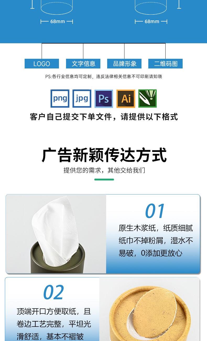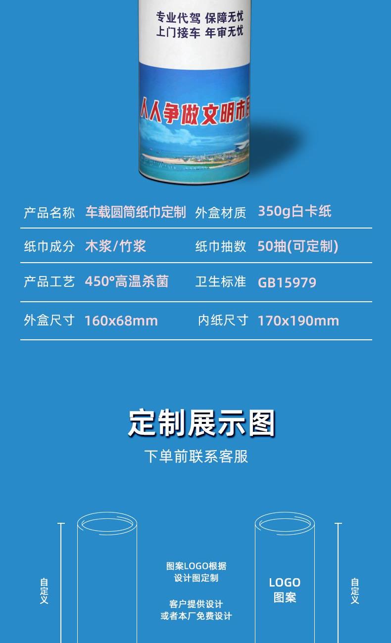 圆筒车载纸巾高颜值卡通创意桶装抽纸盒餐饮酒店商用抽纸巾定制
